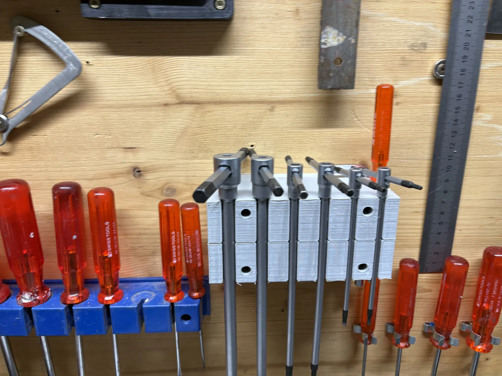 Giá treo tường cho bộ Bahco T-Handle Allen Key, nhiều khả năng hợp với các hãng khác. Thiết kế 2 mảnh đối xứng, có chỗ riêng cho lục giác 7mm và các size nhỏ 1.5/2.0/2.5mm; hỗ trợ gắn nam châm.