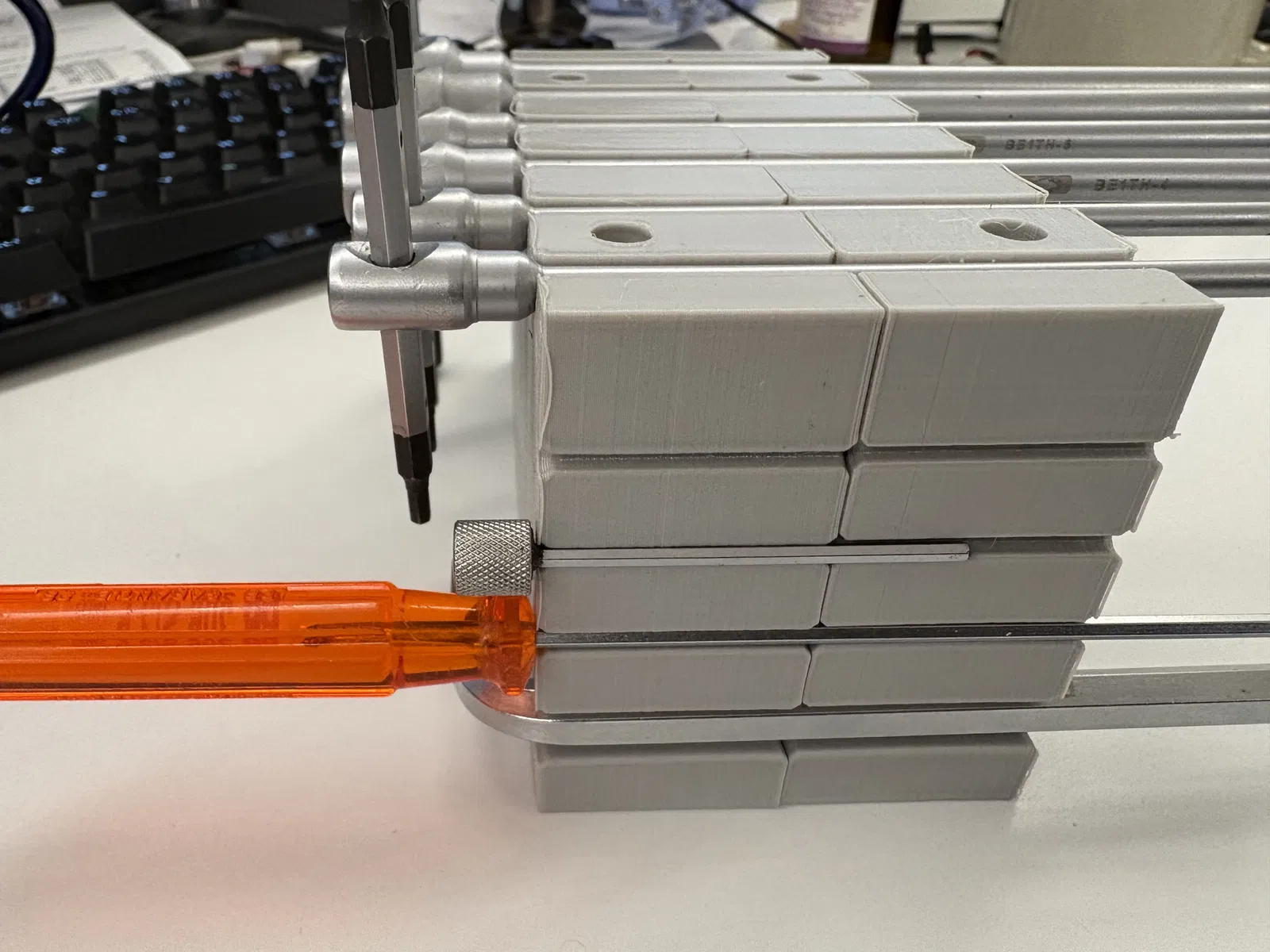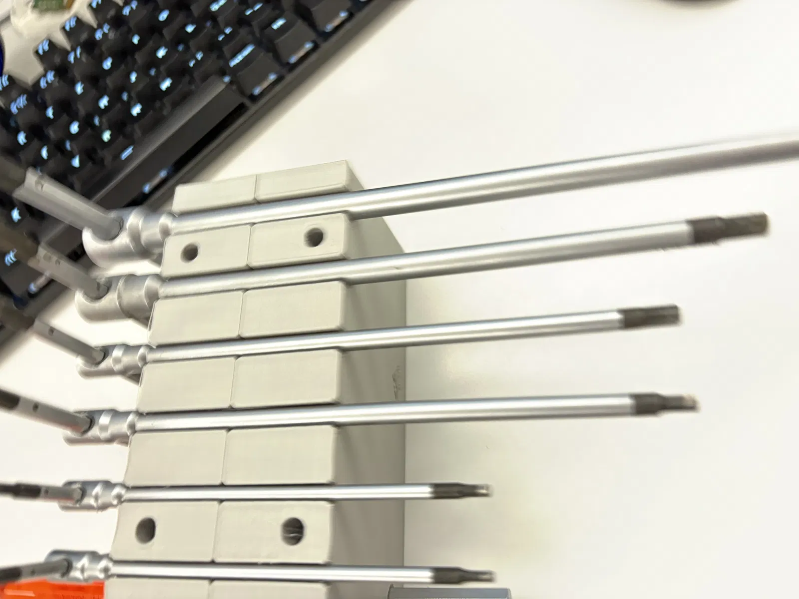 Ở bên hông bản 70mm có một chỗ để cắm cây lục giác 7mm (cái size mà gần như không bộ nào kèm theo, nhưng kiểu gì cũng có ngày cần tới. Mà có rồi thì lại hay quên để đâu — nên mình chừa riêng một vị trí cho nó).