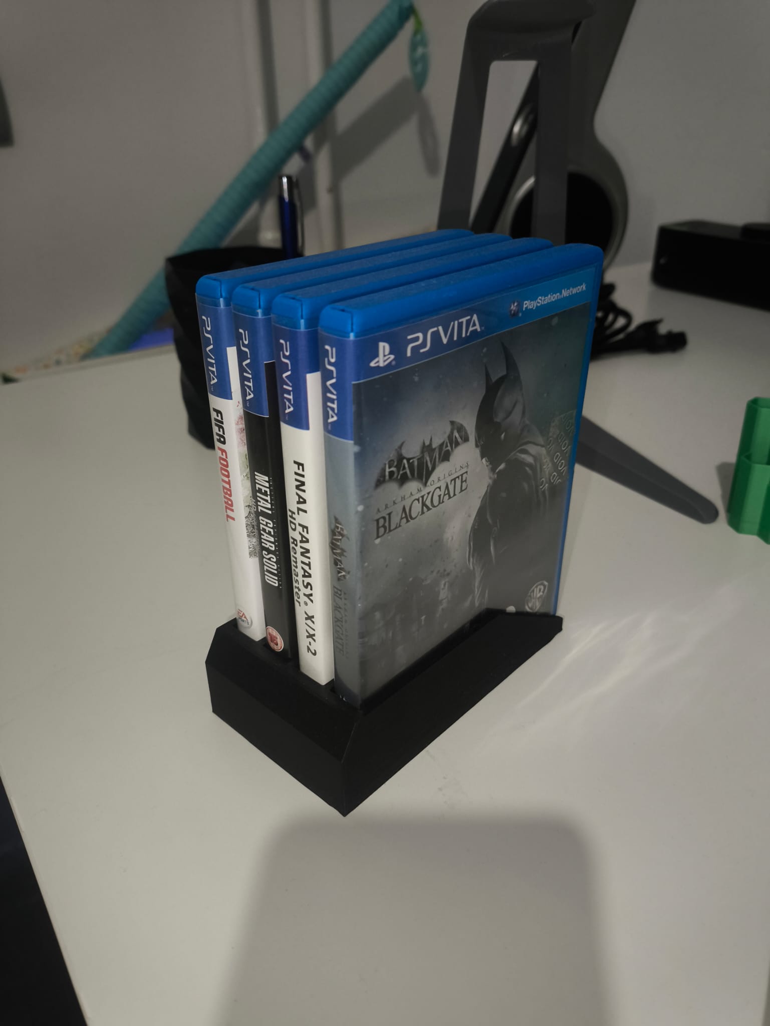 Kệ đỡ rất đơn giản dành cho băng game PS Vita. Kệ có thể chứa tối đa 4 băng. Mình in bằng PLA+, nhưng độ dày thành và thiết kế có vẻ hơi “dư” nên chắc dùng PLA thường cũng ổn.