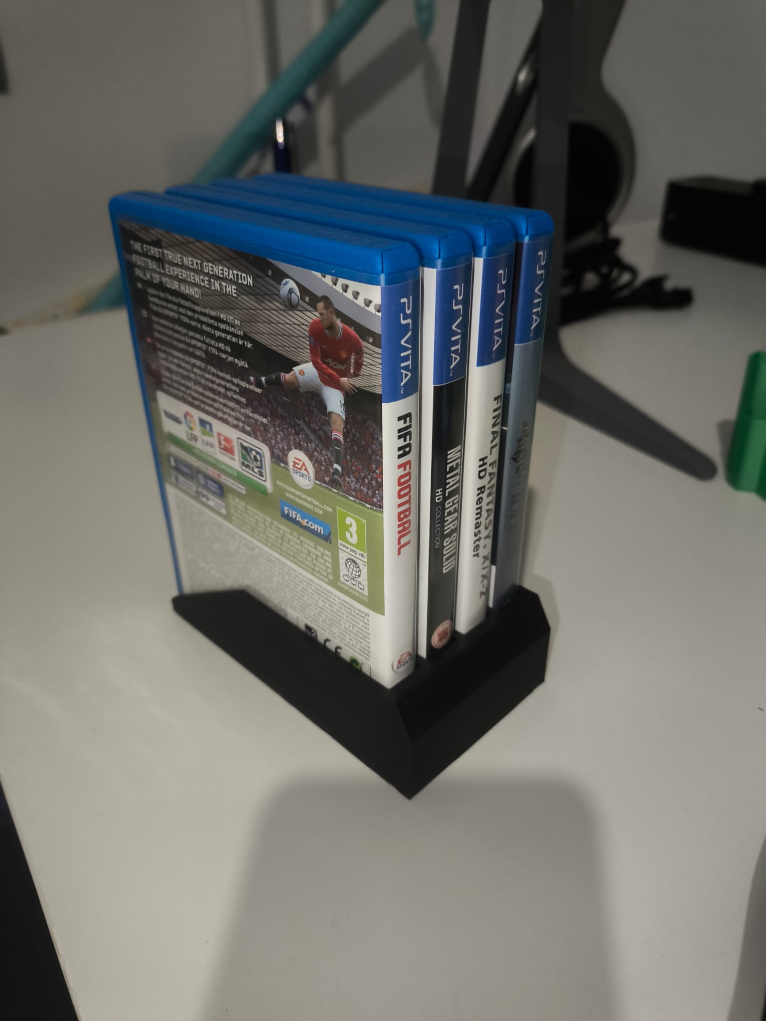Kệ để băng game PS Vita thiết kế đơn giản, gọn gàng, giữ được tối đa 4 băng. Tác giả in bằng PLA+ nhưng thiết kế khá chắc chắn nên PLA thường cũng có thể đáp ứng tốt.