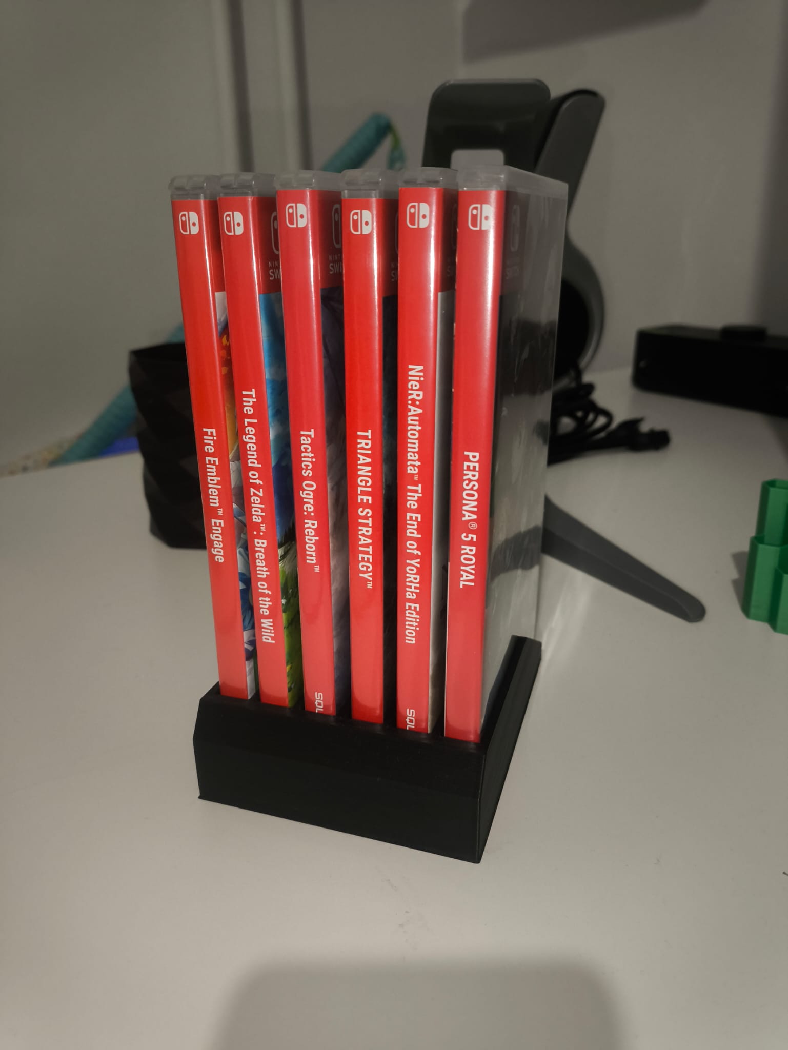 Kệ đỡ đơn giản cho băng game Nintendo Switch, chứa tối đa 6 băng. Mẫu in dễ, mình in bằng PLA+; thiết kế và độ dày thành khá chắc nên dùng PLA thường cũng vẫn phù hợp.
