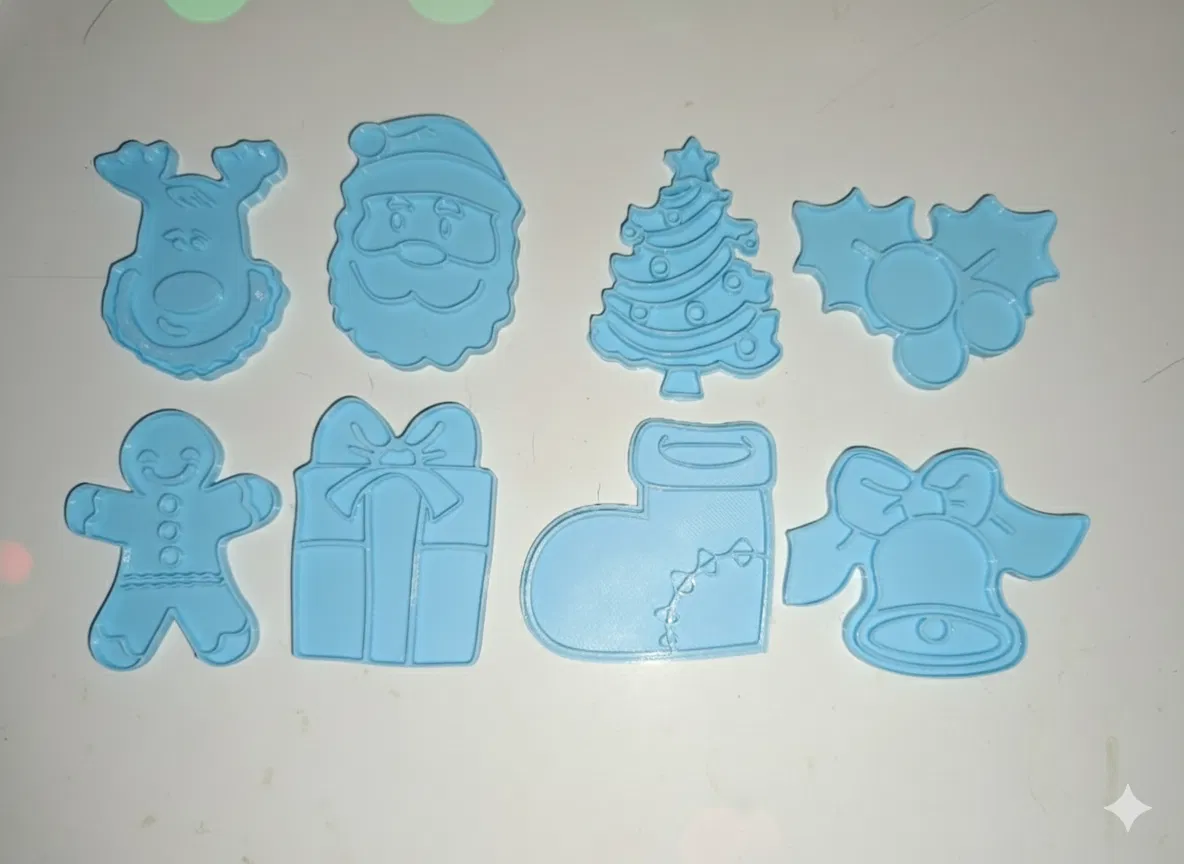 Bộ khuôn cắt bánh quy Giáng Sinh gồm các file tách riêng từng mẫu theo định dạng 2 phần: cutter và marker rời nhau, giúp thao tác dễ hơn với nhiều độ dày bột. Dùng được cho bột bánh, sứ, đất sét.