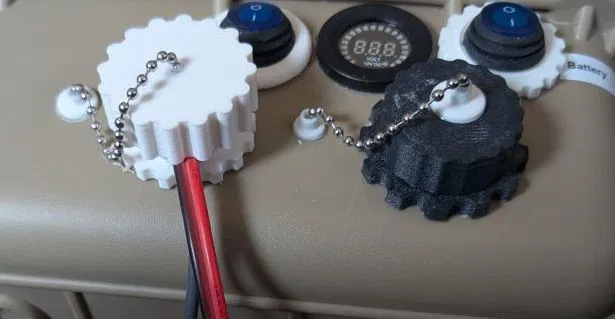 Ngàm neo (bead chain anchor) để dán keo, giúp tăng độ giữ (retension) cho bead chain 3.2mm trên nắp vặn (screw cap) hoặc nắp che bụi (dust cover). Có file Fusion 360 và .STEP.