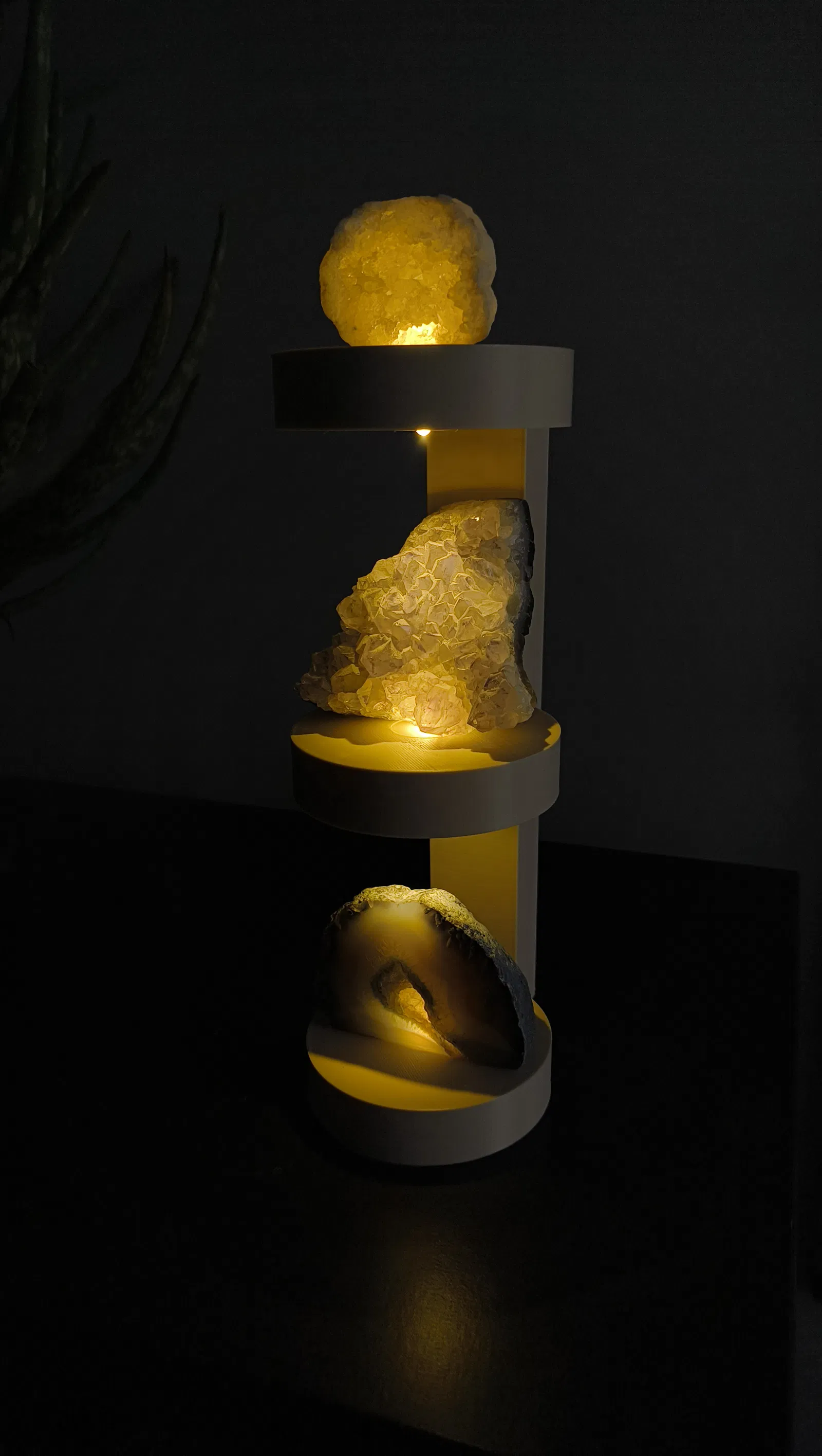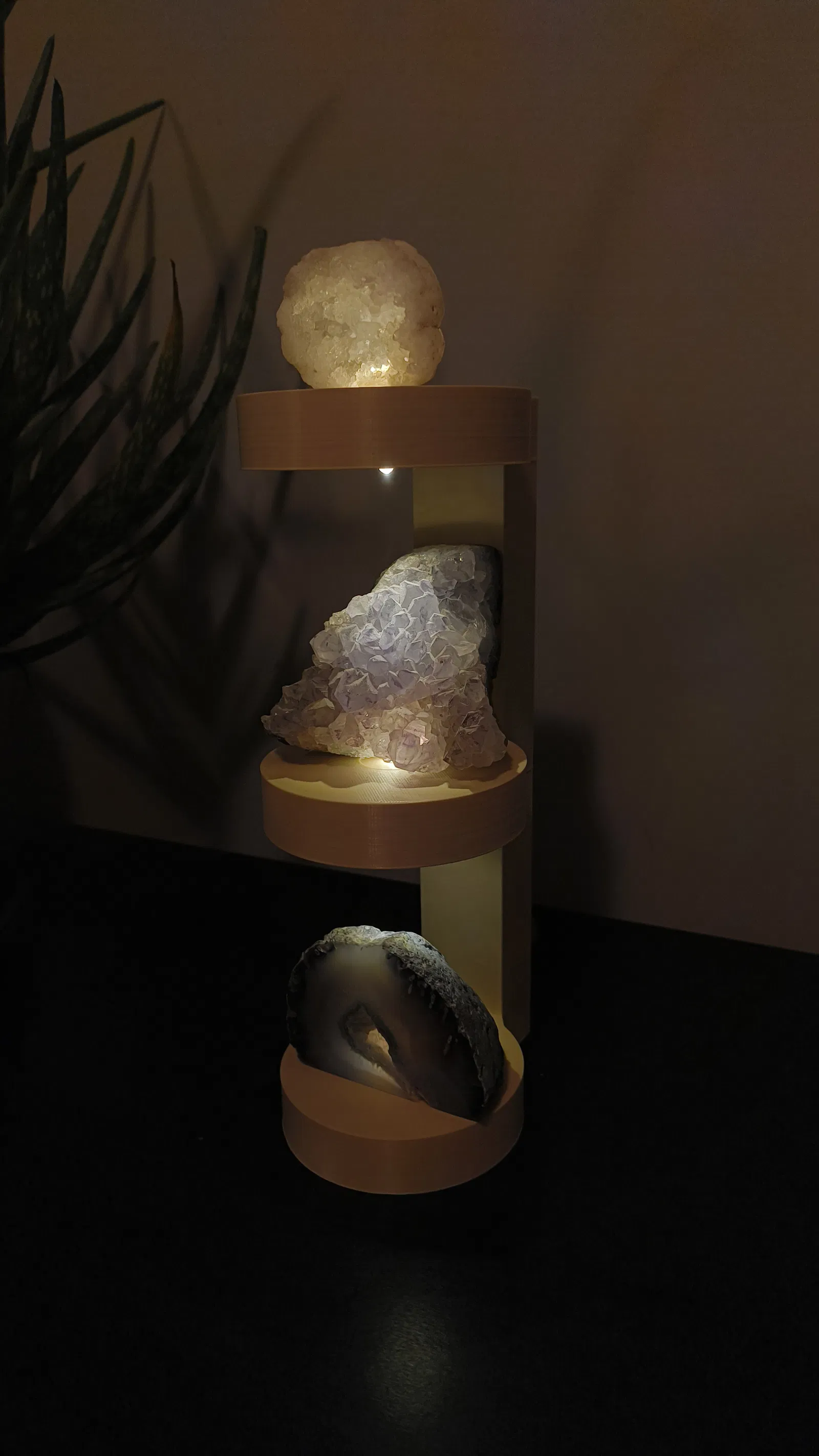 Kệ trưng bày xếp chồng có đèn chiếu trên và dưới, mặt kệ rộng 85mm hợp cho đồ nhỏ. Đã test tải 350g ổn. Khuyến nghị LED 5mm đầu phẳng/loại ngắn, có chỗ cho LED 1/3w và dip switch.