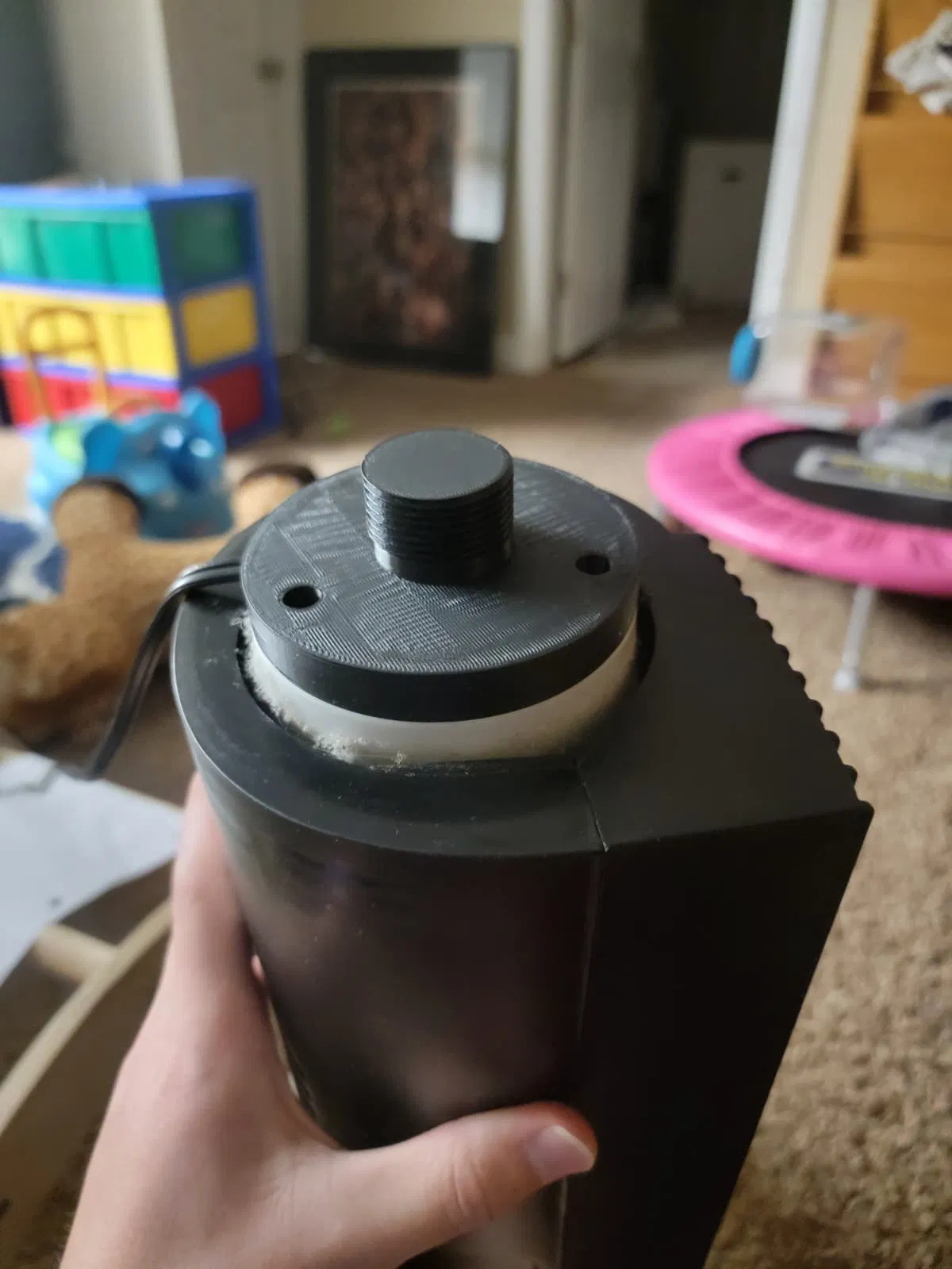 Trong lúc chuyển nhà, một phần ở cái quạt tháp Pelonis cũ bị gãy. Mình vẫn muốn xài quạt nên nghĩ in 3D làm một món thay thế chắc không khó. Mình dựng model trong vài phút rồi in thử vài miếng bằng PLA. Cuối cùng cũng ra được miếng vừa khít và gắn vào, nếu sau này nó gãy nữa thì mình có thể thử ASA, nhưng hiện tại dùng mấy ngày rồi vẫn ổn.