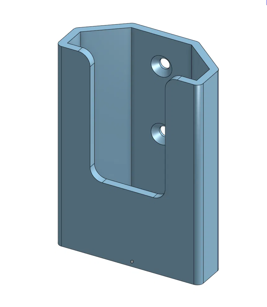 Bản remix giá treo tường đơn giản cho remote TV TCL. Lỗ bắt vít Ø3,5 mm (counterbore Ø5 mm), khoảng cách 22,5 mm; có thể chỉnh trong model qua sketch “Hole positions” và feature “Hole” trên OnShape.