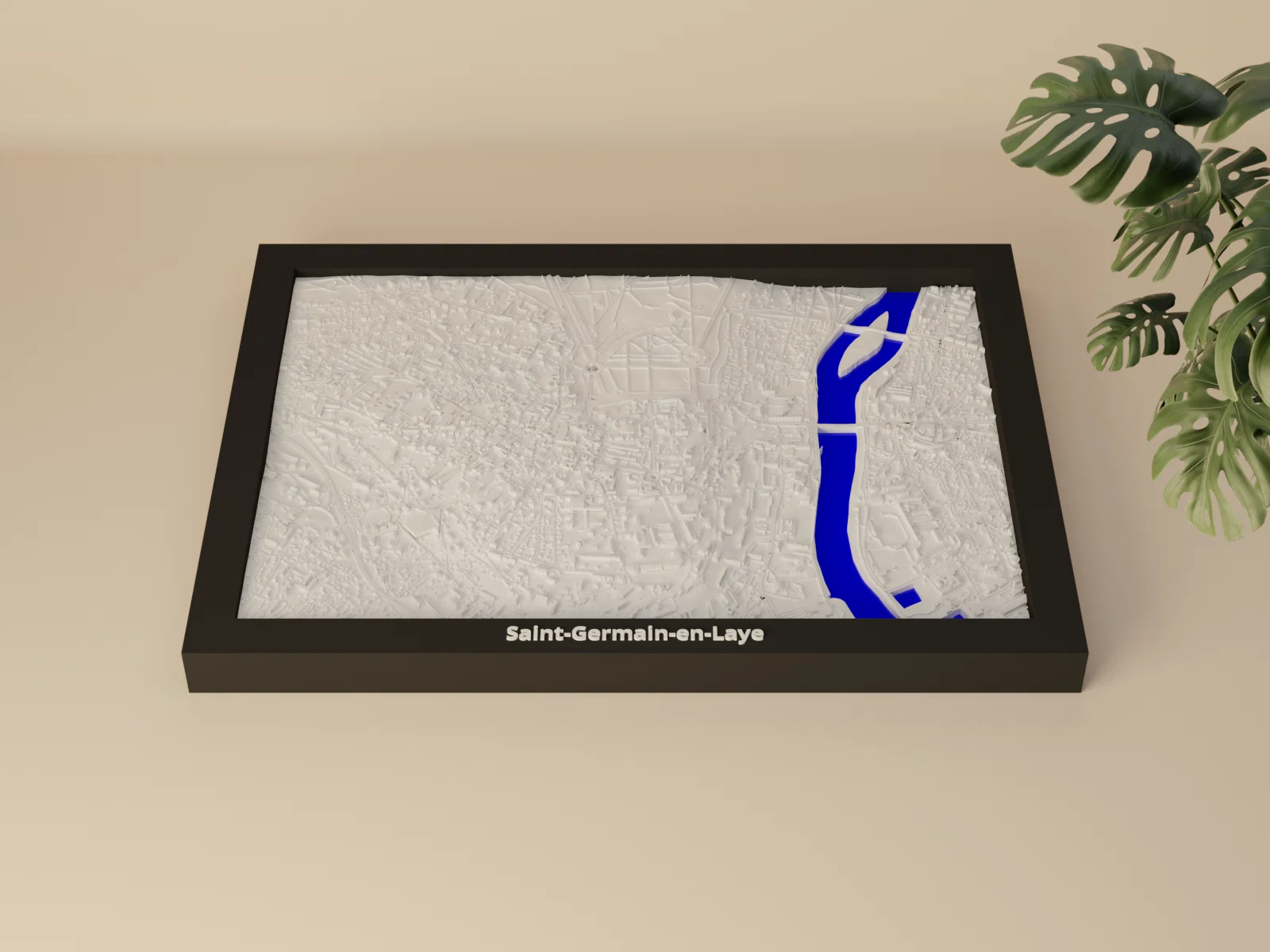 Mô hình địa hình (topographic) 3D in được của Saint-Germain-en-Laye - 🇫🇷 Pháp