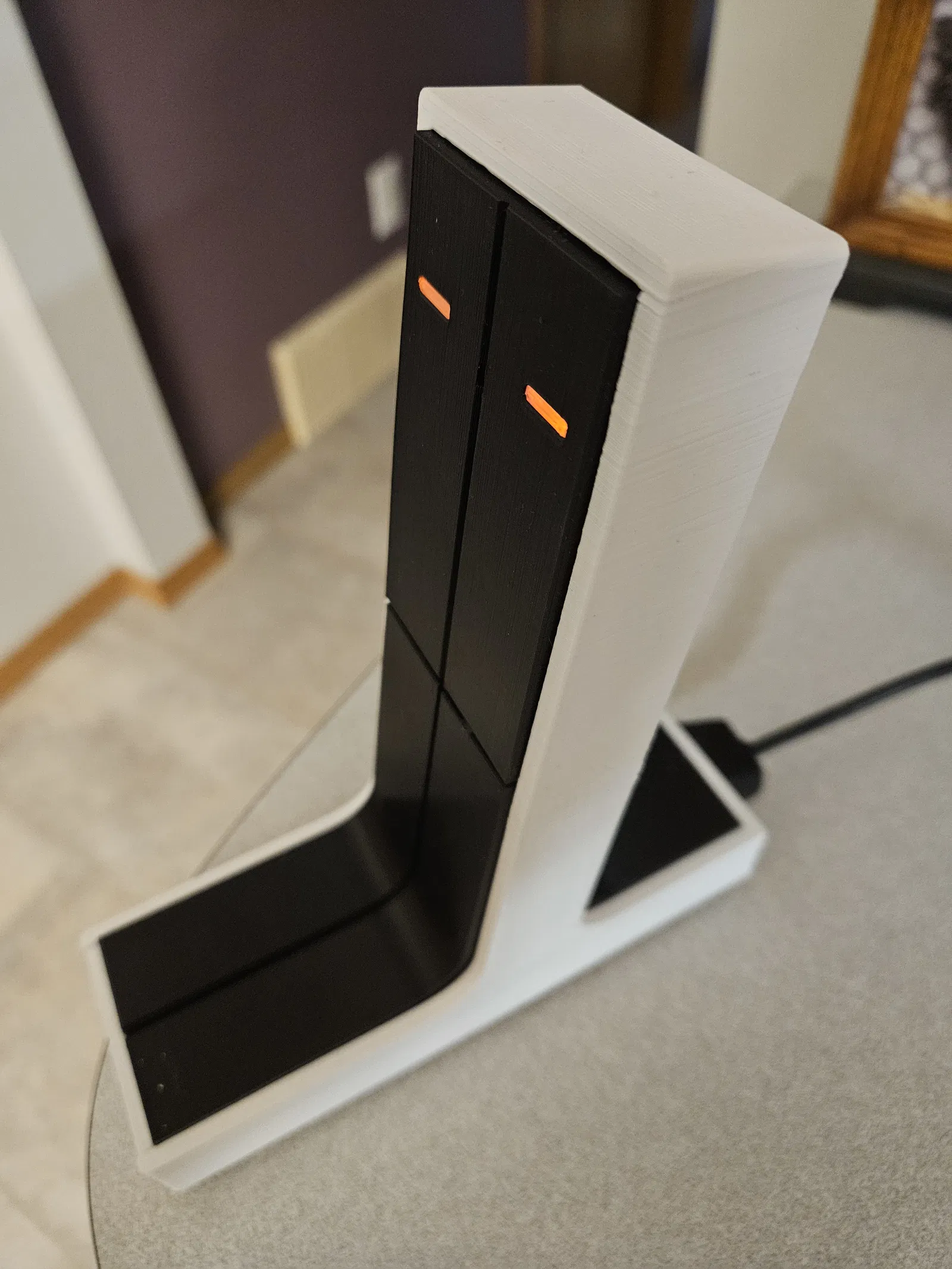 Tất cả được in bằng PLA, trừ các light guide được in bằng PETG trong suốt. Nếu ánh sáng bị “tràn” từ LED khác qua quá nhiều, có thể dùng bút lông tô màu phần hông của các guide.