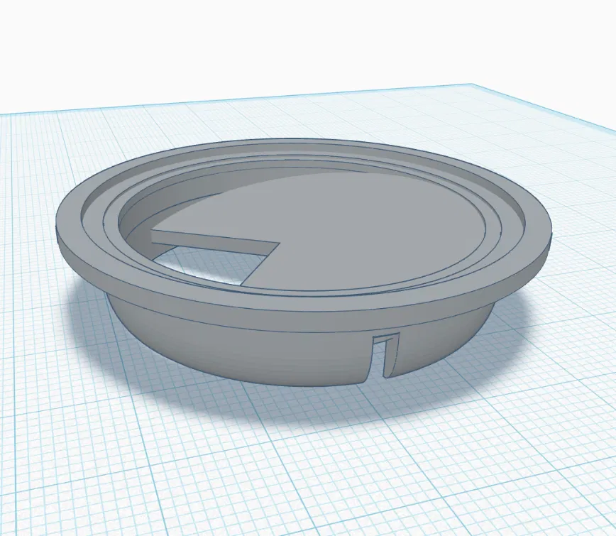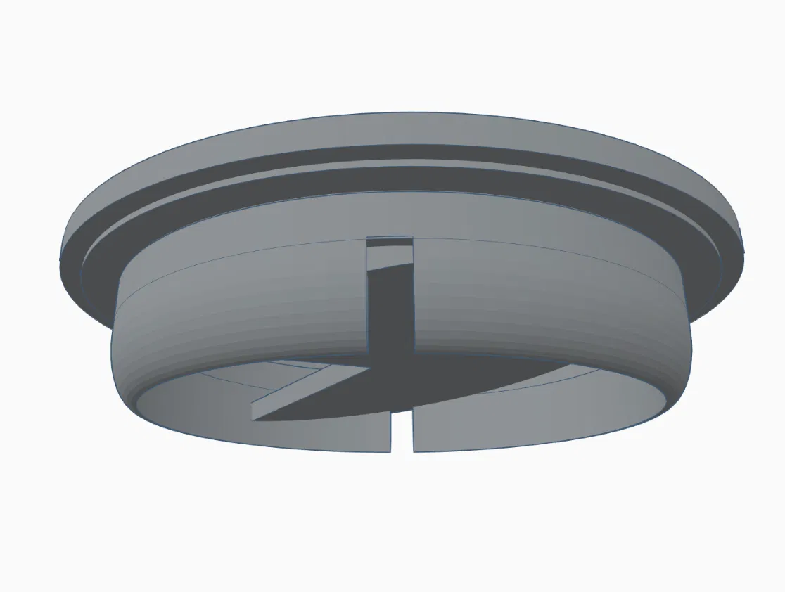 Nắp chống đổ đặt lên miệng ly mate, có lỗ trên mặt đế nghiêng để cắm bombilla và rót nước qua đó. Mẫu gốc đáy 44x44mm, có rãnh và viền cong để ôm khít, phù hợp in PLA.