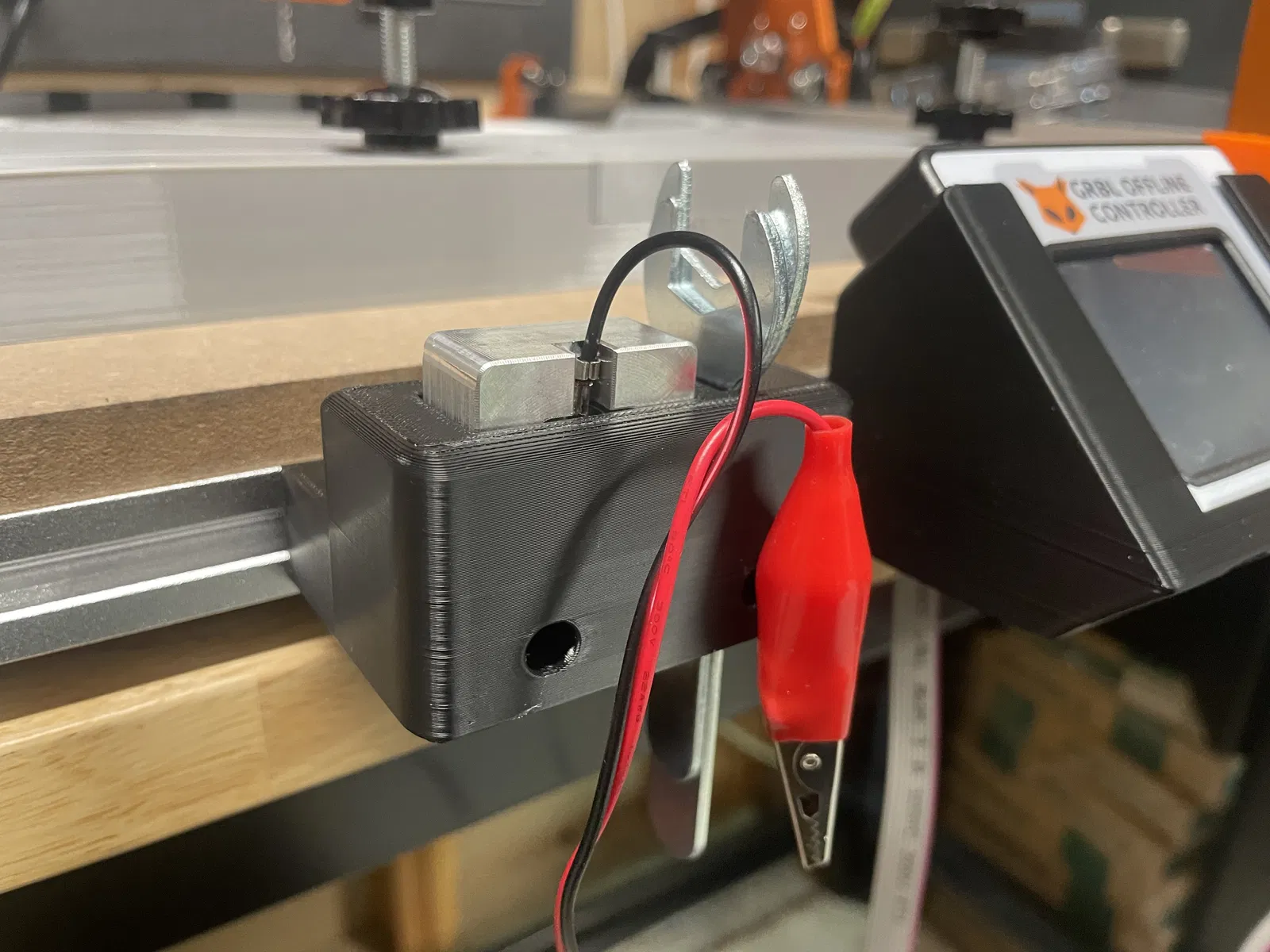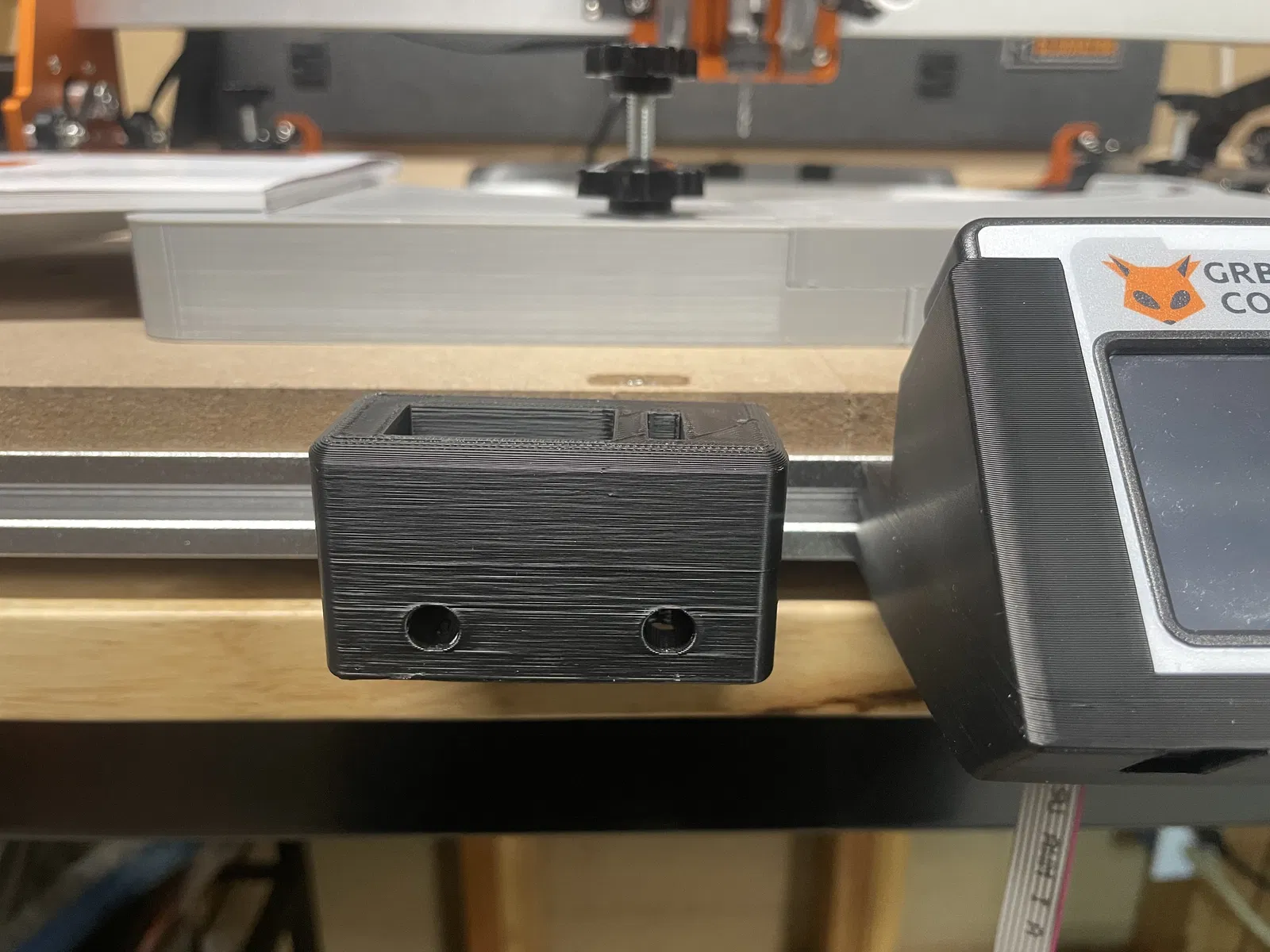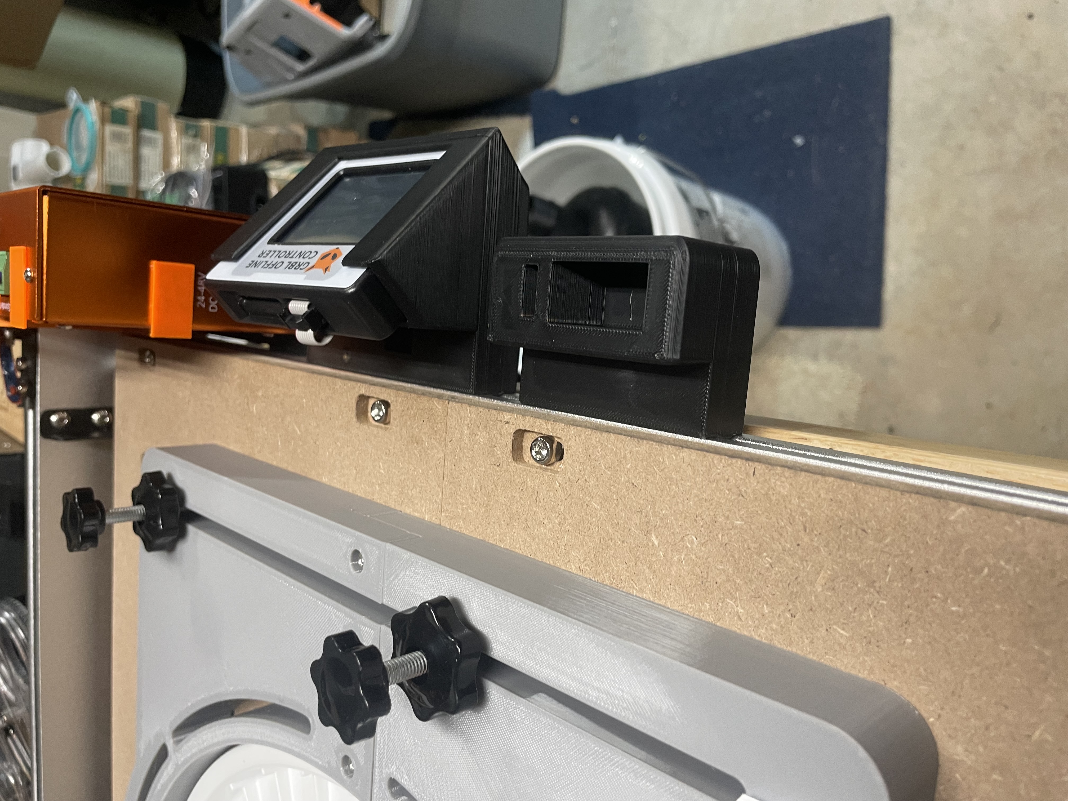 Giá đỡ dụng cụ cho phía trước hoặc phía sau của máy CNC FoxAlien Mauser Pro. Giá đỡ được thiết kế lệch (offset) để tránh bị vướng/cạ vào dust shoe.