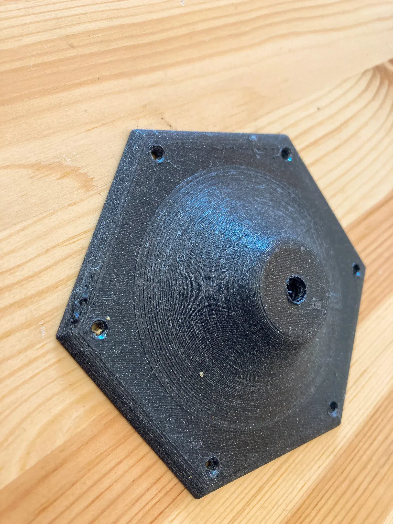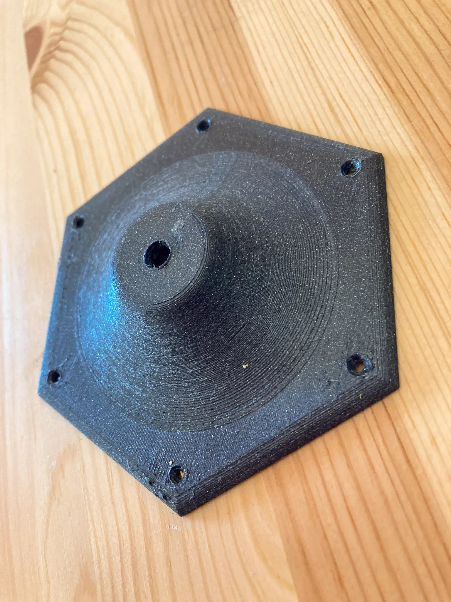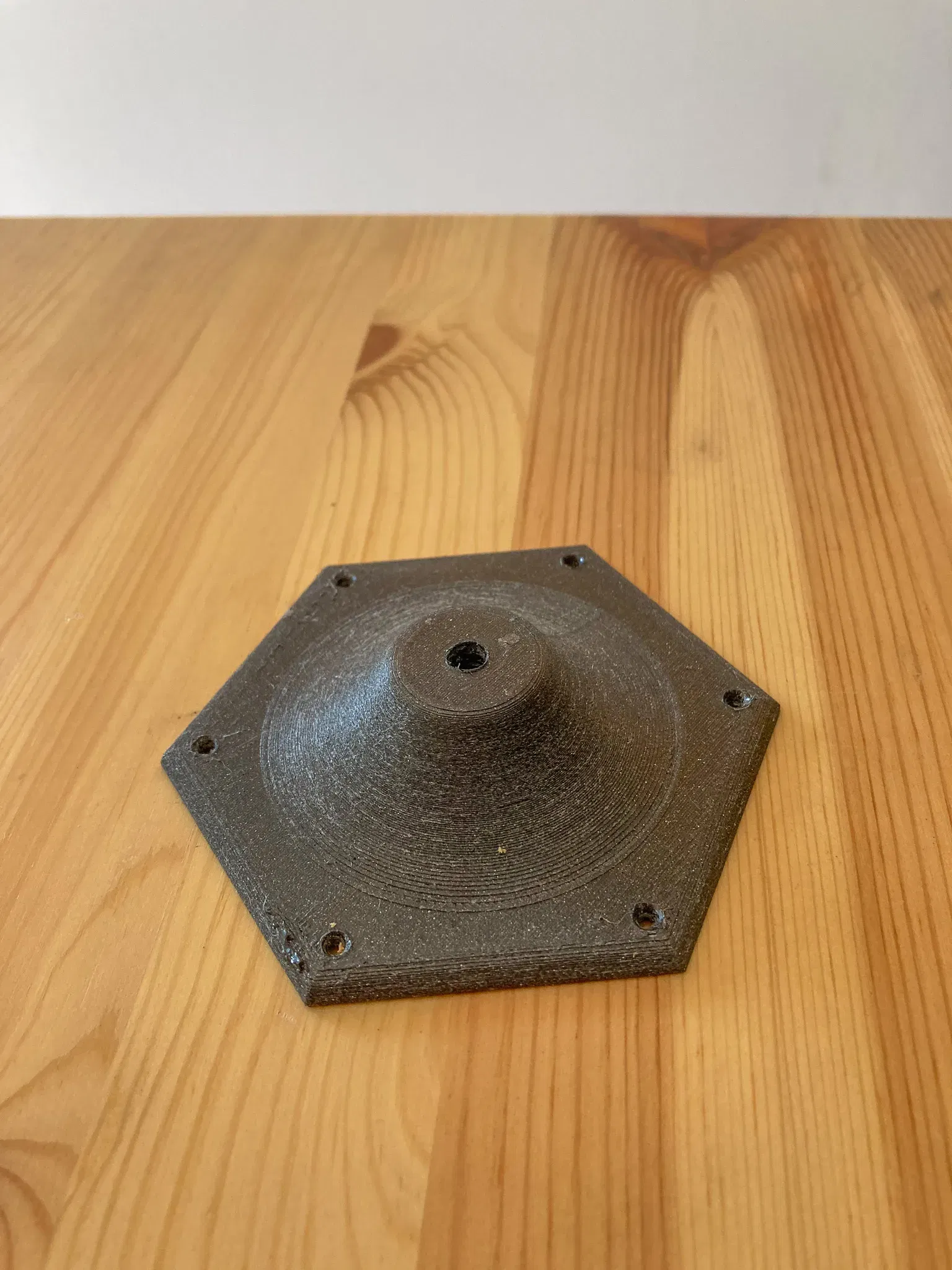 Để kết nối bộ chuyển đổi với tấm gỗ, tôi đã in một bộ chuyển đổi. Tôi đã thiết kế nó trong Fusion360 với hai phiên bản, một phiên bản có ¼" được mô hình hóa và một phiên bản có chỗ để chèn đồng ren (có sẵn ở đây: https://www.amazon.com/dp/B09MTS6ZZQ?ref=ppx_yo2ov_dt_b_product_details&th=1))
