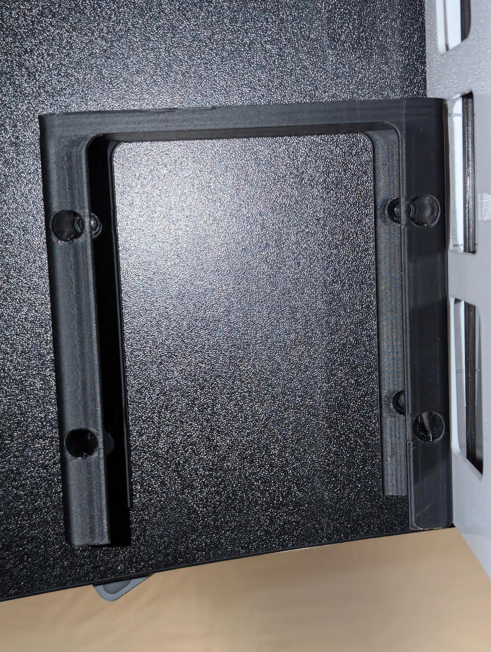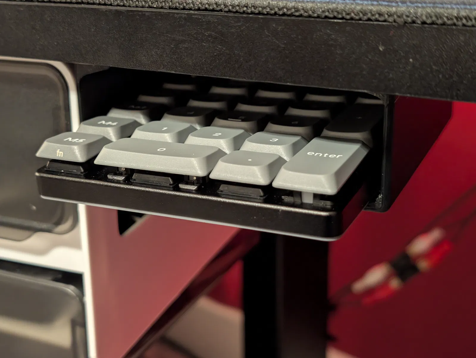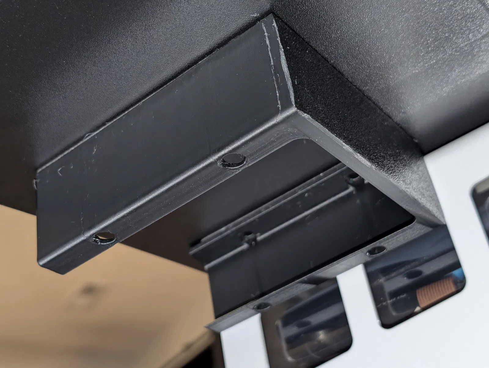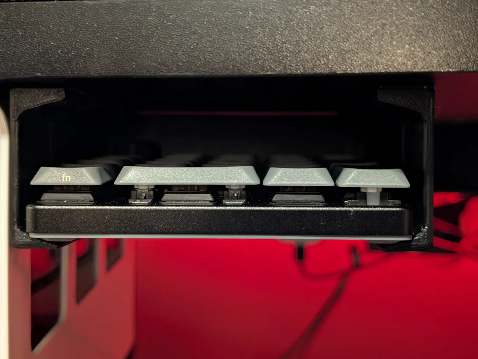 Một cái giá treo dưới bàn để giữ Keychron K0 Max khỏi chiếm diện tích mặt bàn. Có sẵn lỗ bắt vít nếu bạn không muốn dùng băng keo VBH, hoặc nếu bạn muốn gắn nam châm chìm (embedded magnets) để giữ nó chắc hơn. Mình in bằng Bambu A1 và Orca Slicer. Thiệt tình là mình quên chụp hình trước khi gắn nó xuống dưới bàn
