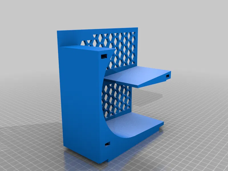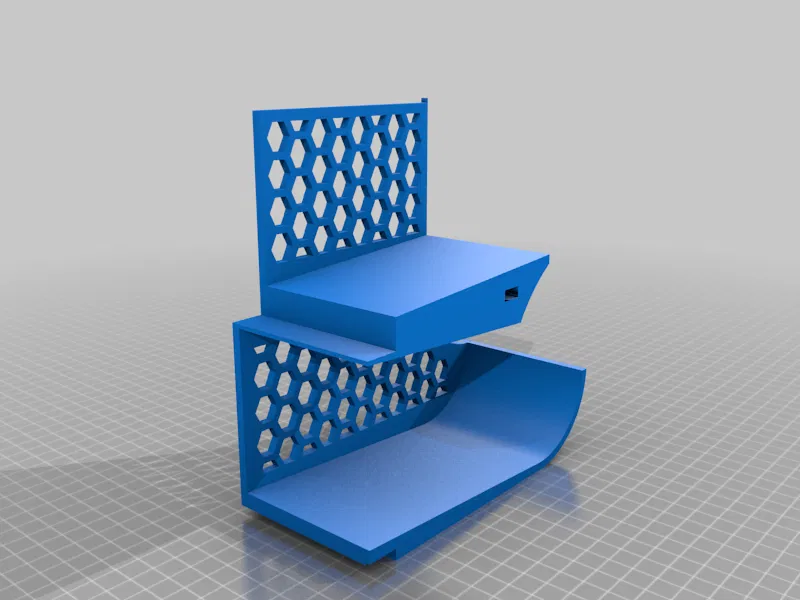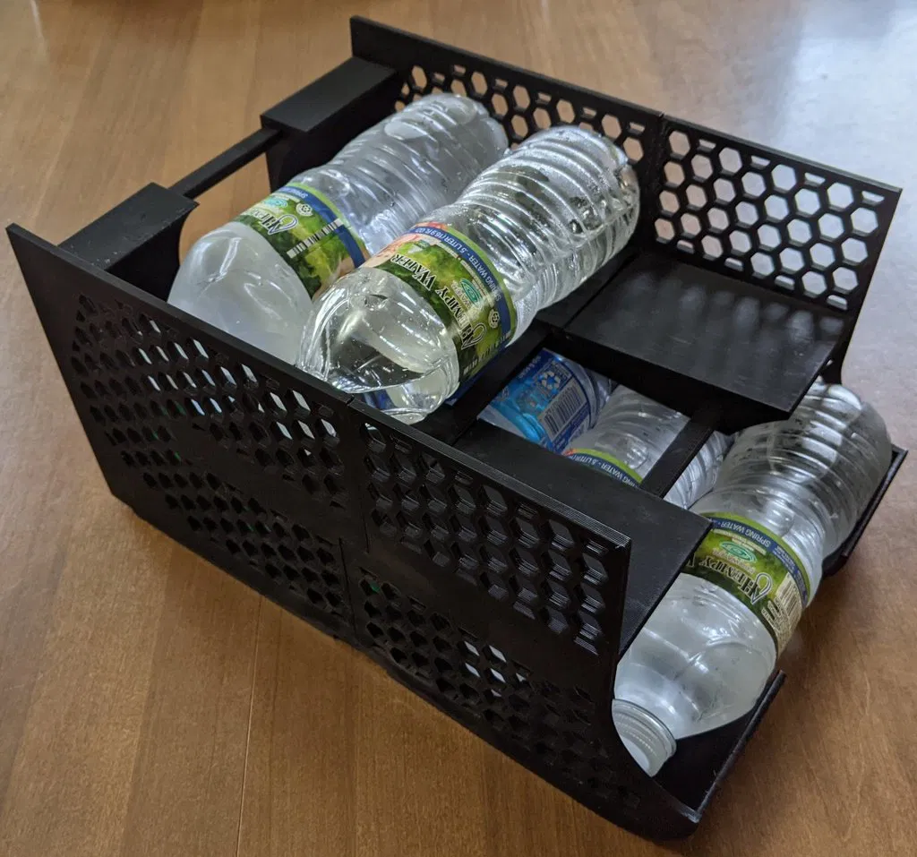CẬP NHẬT 2021.10.01 - mỗi yêu cầu, tôi đã thêm một nẹp vào không gian các nửa ra để phù hợp với các chai người bạn đời cao. Tôi đã sử dụng tập lệnh SCAD để tạo cơ sở với các kích thước chính xác. Tôi đã tạo một mẫu cắt hex cho luồng không khí trong tủ lạnh, bỏ qua niềng răng trên cùng và dưới và tôi đã thêm một số niềng răng có thể chèn mạnh hơn nhiều. 21,6cm (~ 8,5in)