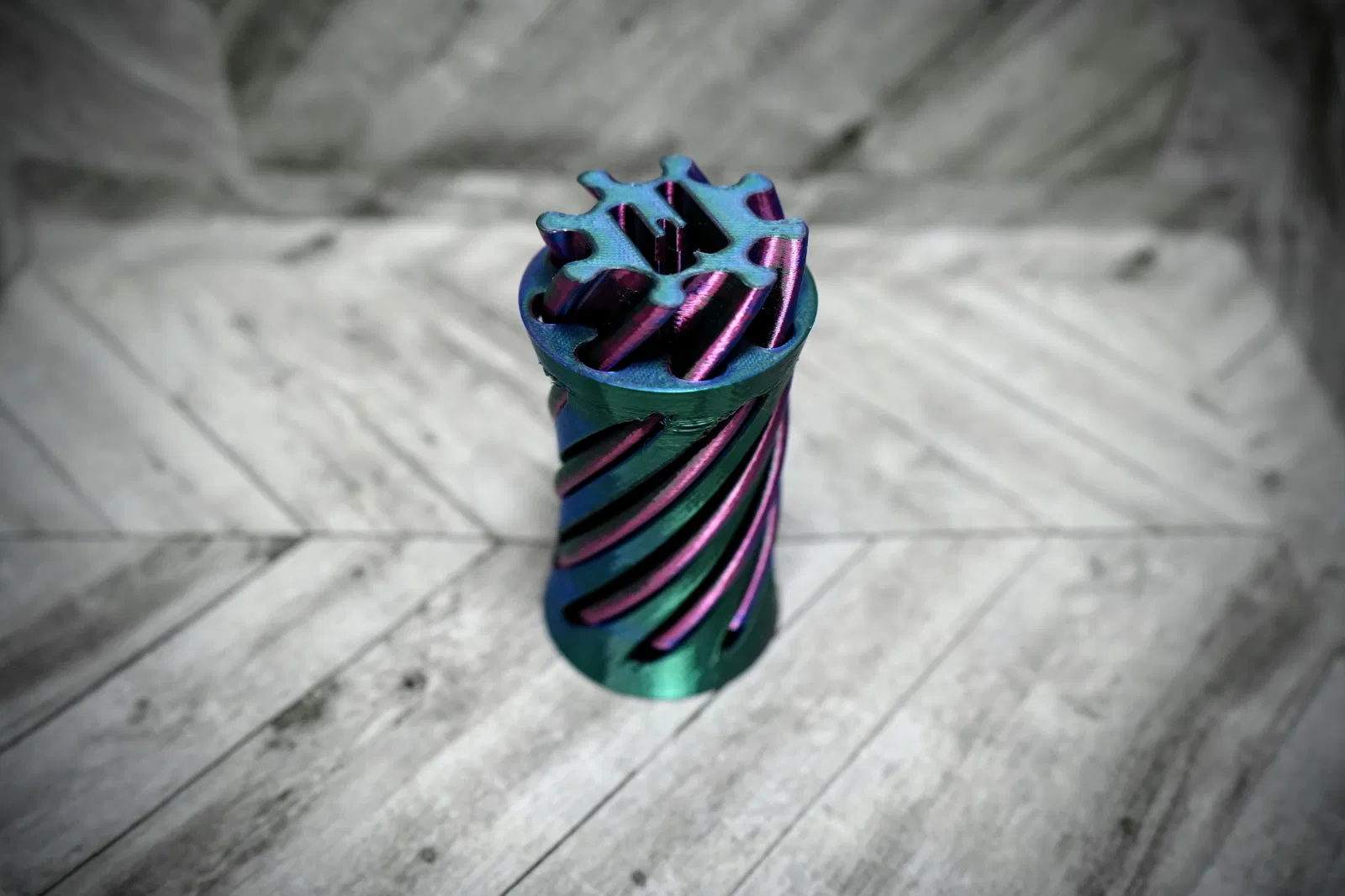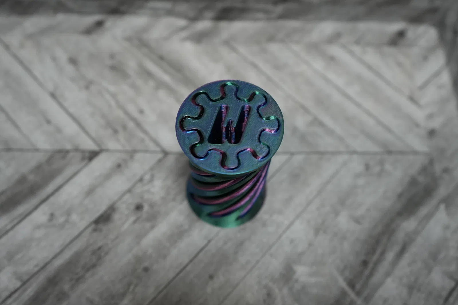 Mẫu fidget dạng xoáy vortex với cú xoắn 180°, bên trong có chữ W để tạo điểm nhấn cá nhân. Phù hợp in 3D làm đồ chơi thư giãn cho bạn hoặc làm quà tặng theo chữ cái mong muốn.