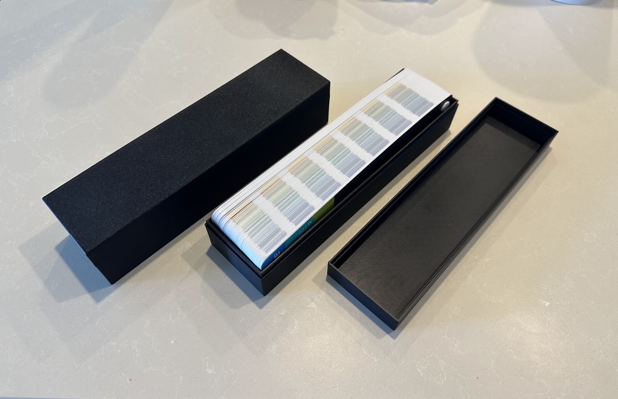 Đây là một cái hộp đơn giản mình làm để đựng bộ swatch Pantone của vợ mình, vì để lâu bị phơi sáng sẽ làm màu bị phai theo thời gian.