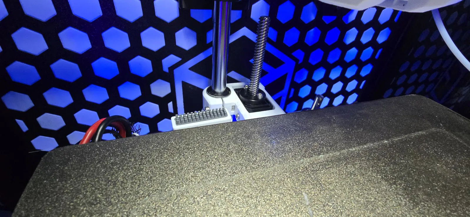 Bracket tận dụng khoảng trống ở ổ trượt tuyến tính phía sau trên E3NG (RH3D) để gắn dụng cụ vệ sinh nozzle. Có 2 bản: Bambu A1 silicone wiper hoặc brass nozzle brush, không vướng chuyển động, không mất build volume.