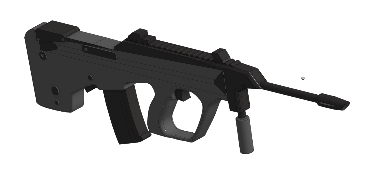 Mẫu thiết kế 3D của UAR A3 Rifle, kiểu bullpup modular với thân gọn, rail Picatinny để gắn phụ kiện. Phù hợp làm mô hình trưng bày hoặc dự án in 3D cho chủ đề quân sự, vũ khí.