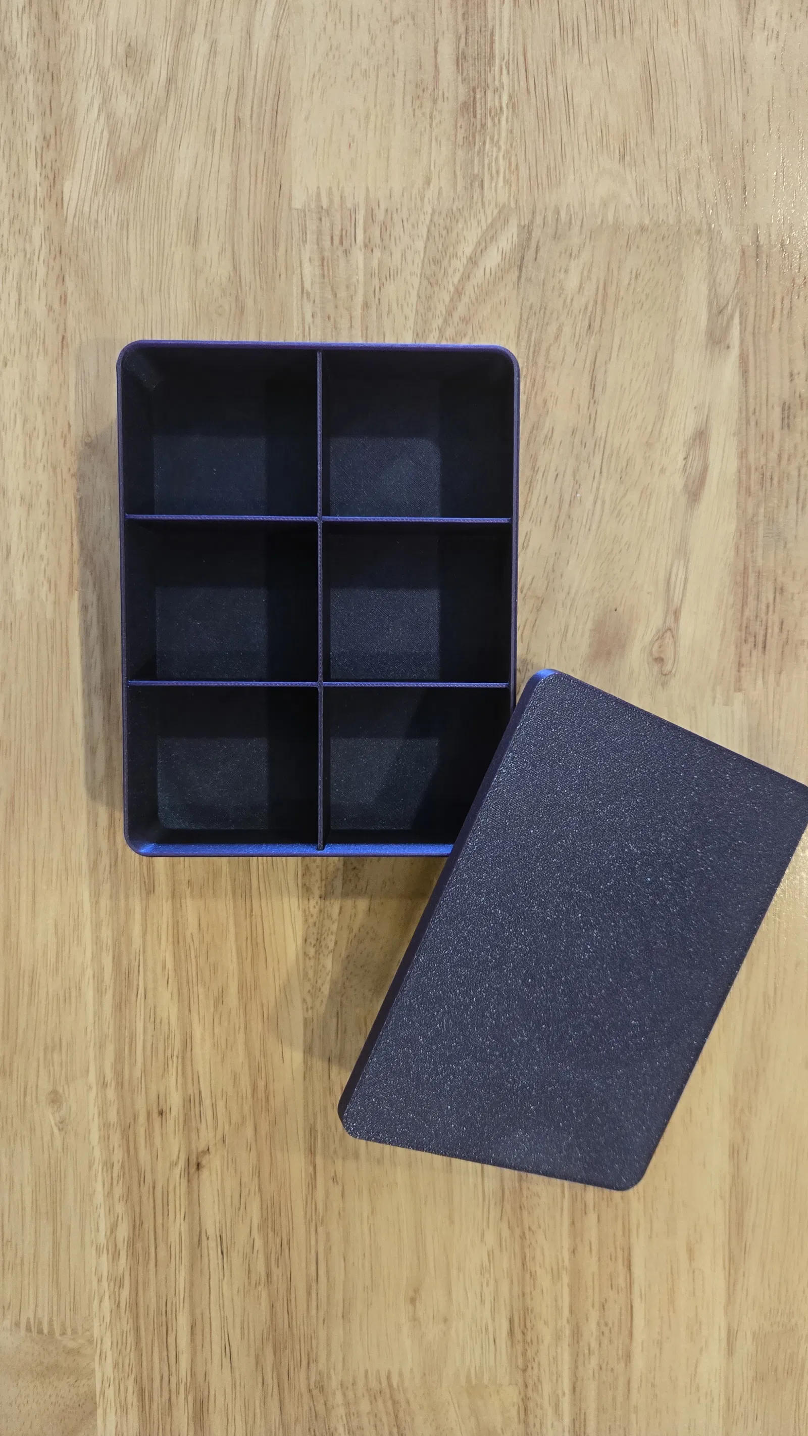 Mẫu hộp đơn giản có thể xếp chồng kèm nắp, kích thước 100x130mm. Phù hợp để đựng đồ nhỏ như trang sức, phụ kiện hoặc linh kiện, dễ in 3D và tiện sắp xếp gọn gàng.
