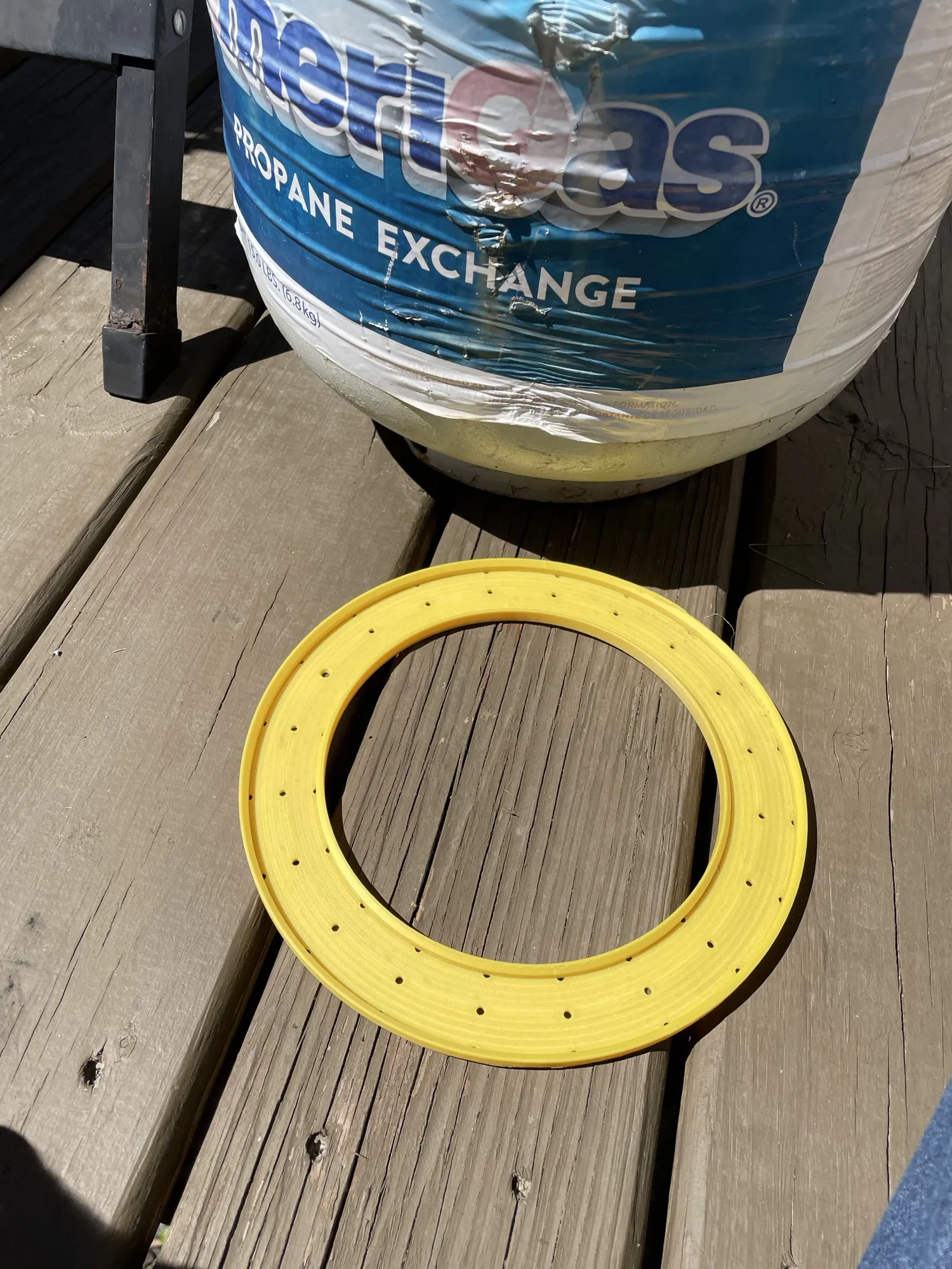 Ngăn các đốm gỉ từ bể propane của bạn bằng cách tách nó với vòng này. Ngăn ngừa rỉ sét hơn nữa bằng cách để nước chảy ra