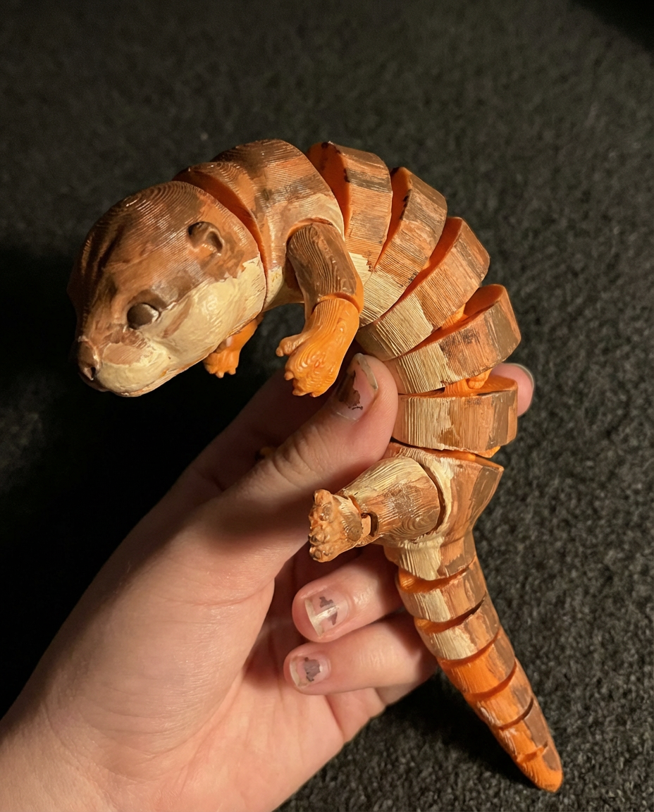 Gặp ngay “bé” bạn đồng hành mới trên bàn làm việc của bạn! Mẫu Flexi Otter dạng articulated này chuyển động rất tự nhiên và mang lại cảm giác “đã tay” khi sờ/chơi. In một lần nguyên khối, không cần lắp ráp—cứ in xong là cầm lên chơi với người bạn thủy sinh siêu dễ thương này.