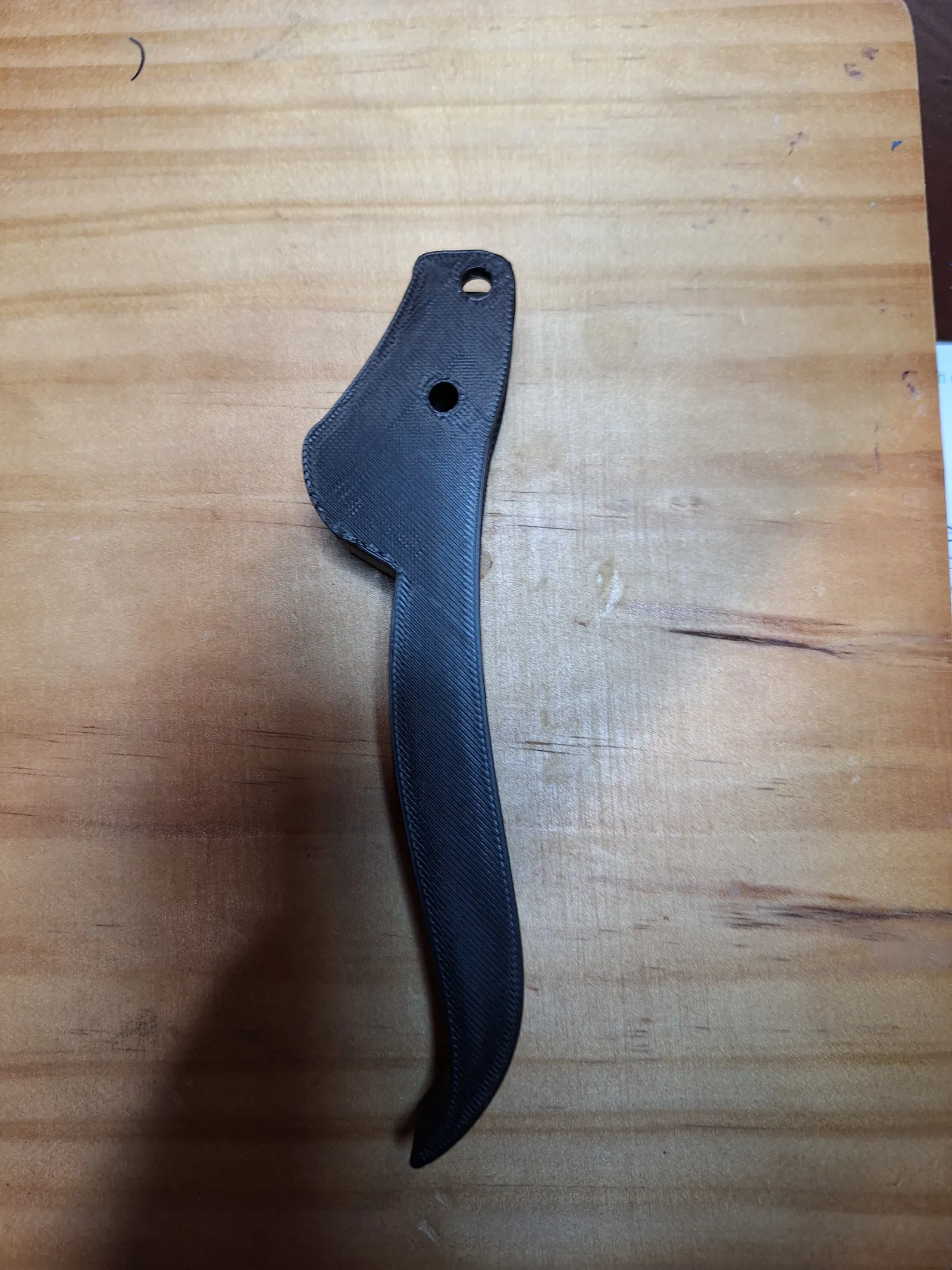 Cùng kiểu tay cầm như mẫu trước của mình, nhưng phiên bản này có thêm lỗ để gắn con bulông thứ hai. Mình không khoét âm (countersink) chỗ nào hết để giữ độ bền.