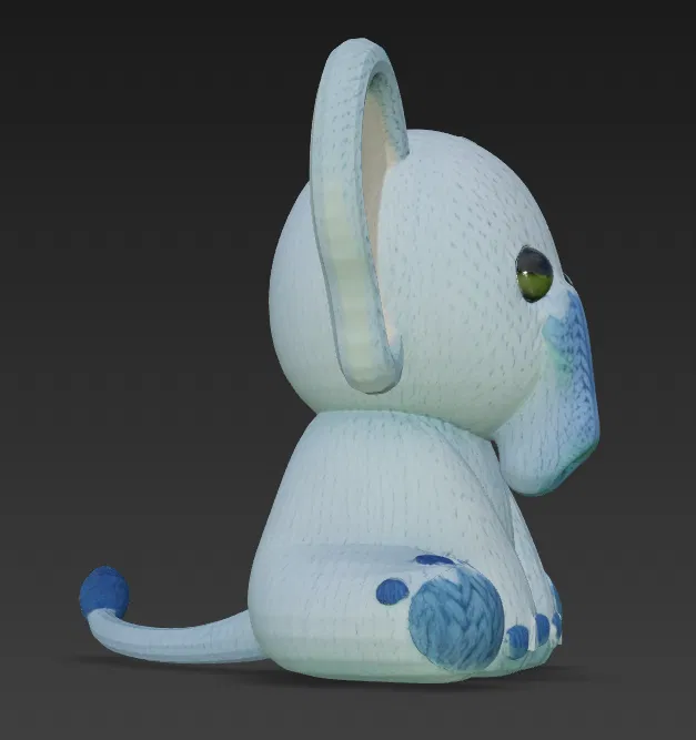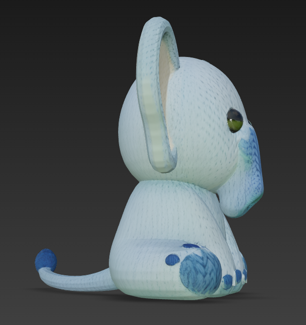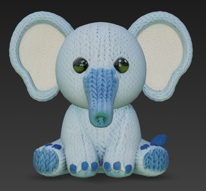 Mang nét ấm áp của đồ chơi handmade lên máy in 3D với Cute Knitted Elephant. Bề mặt texture độ phân giải cao mô phỏng vòng len và mũi đan như yarn thật, cho cảm giác amigurumi đáng yêu để trang trí hoặc làm quà tặng.