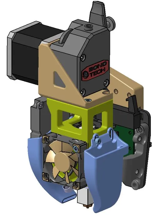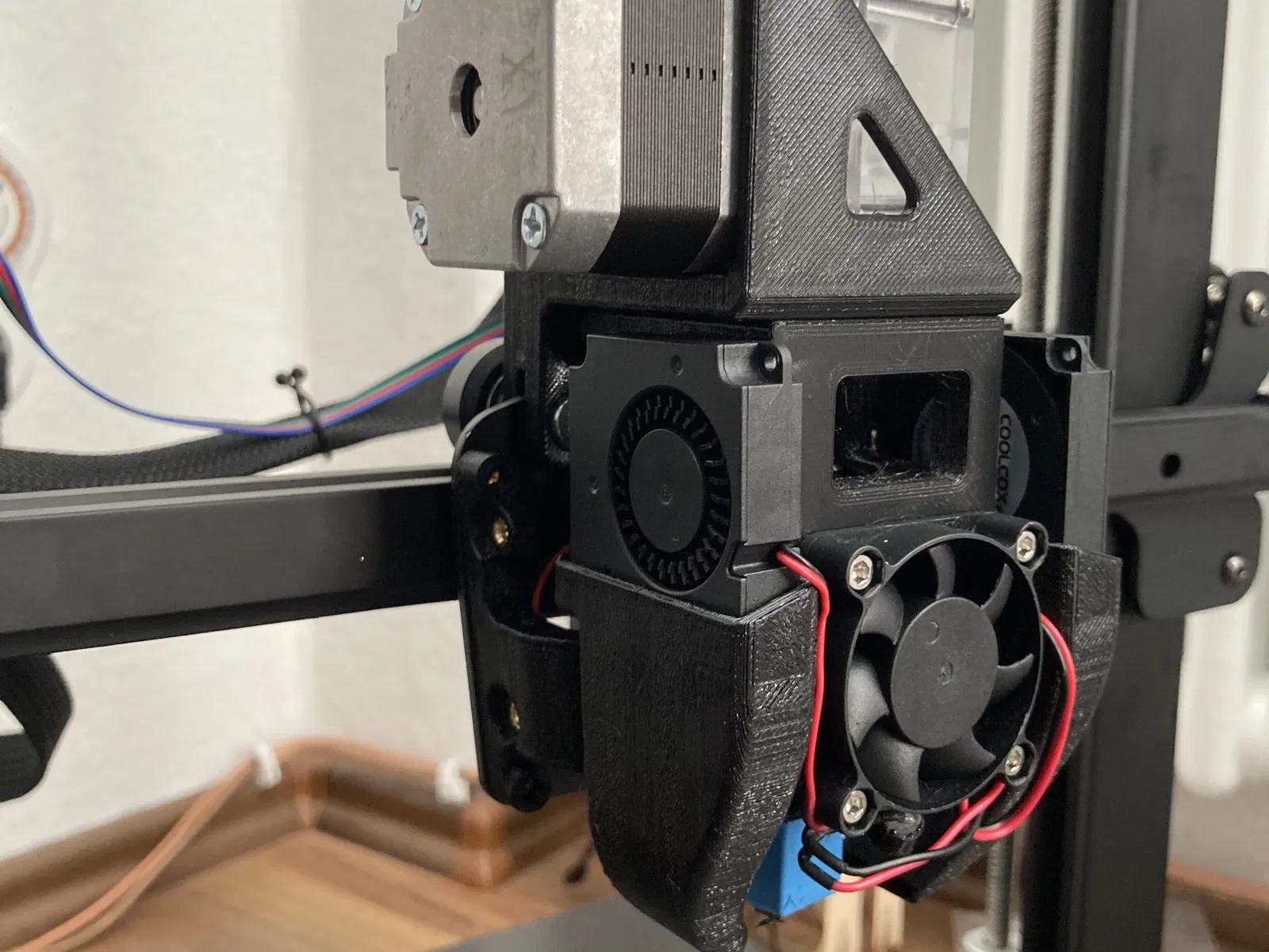 - Xin hãy bắt đầu bằng cách tháo rời đầu in nguyên bản. Chỉ giữ lại hotend với cảm biến căng. Cũng hãy tháo phần kim loại tấm dưới xung quanh hotend! - Bắt đầu bằng cách lắp ráp phần trên, nhấn cả hai ống vào và sau đó trượt nhẹ nhàng nó lên tấm. - Sau khi bạn cố định giá đỡ này vào gantry, hãy kết nối trực tiếp cáp vào bảng PCB, trước khi bạn cố định bảng trở lại gantry! - Hàn tất cả các lỗ của phần dưới với các đai ốc, tương tự cho cả hai cánh tay (xem hình ảnh). - Cố định các cánh tay vào phần dưới bằng cách sử dụng các vít. - Bây giờ bạn có thể cố định cụm này dưới phần trên vào gantry. Hãy chú ý đến các cáp và PCB ở bên phải. Đừng quên cố định phần trên với phần dưới bằng 4 vít bổ sung. - Bước tiếp theo, bạn có thể thêm các váy, sau đó chỉ cần trượt các quạt phần vào các váy. - Trước khi bạn thêm BMG Clone, hãy đặt ống bowden nhỏ vào hotend và sau đó trượt extruder vào. Cố định stepper bằng các vít nguyên bản. - Bạn cần hoán đổi 2 dây trên cáp mở rộng hoặc thay đổi hướng của extruder trong firmware của bạn (ví dụ như với Klipper dễ dàng thực hiện). Chúc bạn vui vẻ và hãy cho chúng tôi xem sản phẩm của bạn!