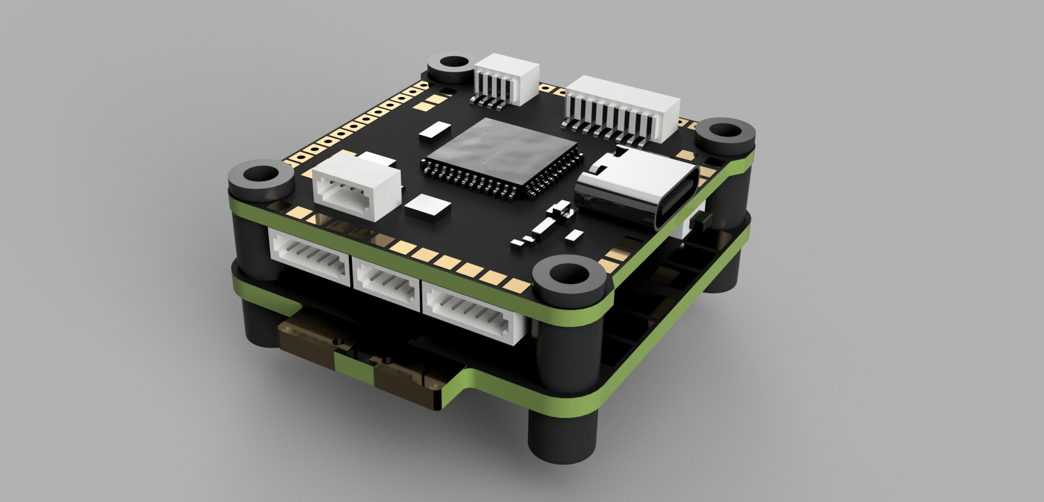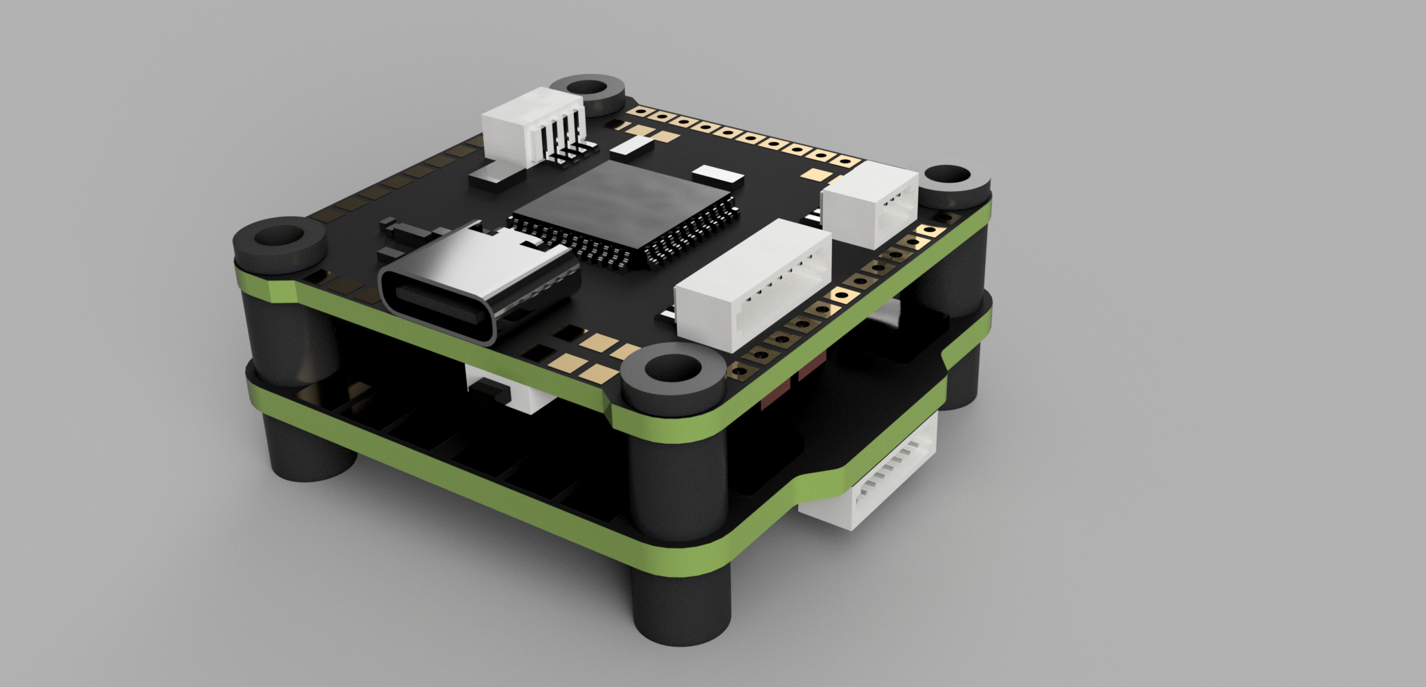 Đây là bản model hoá (3D) của flight controller 9imod F722 kèm ESC 4in1 60A.