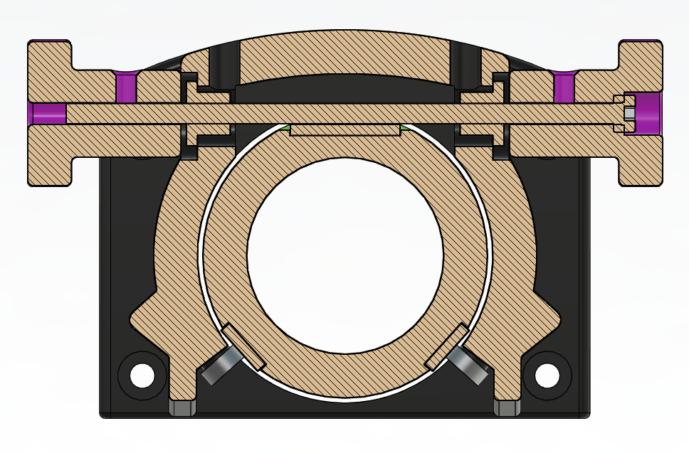 - Lắp bearings lên thân focuser chính bằng ốc M4x20. Siết để còn chút độ rơ nhỏ nhưng bearings vẫn quay mượt. Vặn các vít nylon ở phía trên vào, nhưng chỉ vặn một phần.