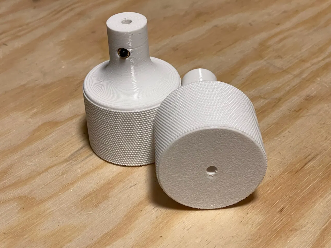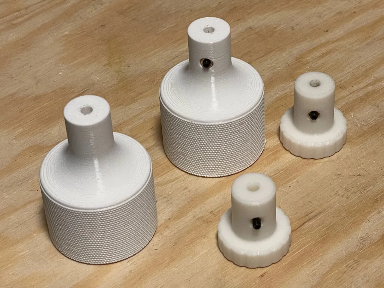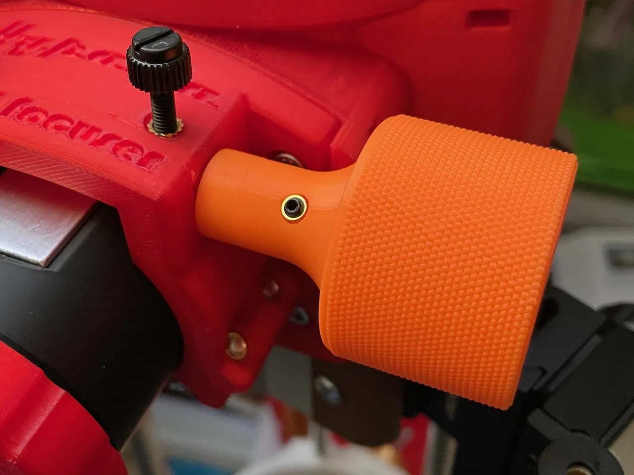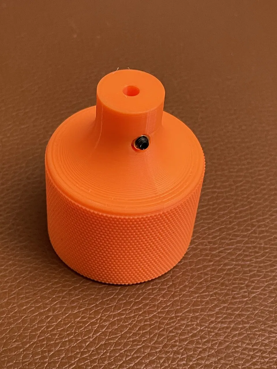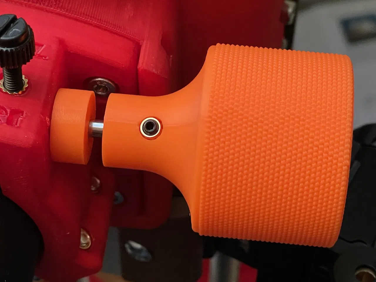Heat insert mình dùng cho vít hãm 3mm là loại M3x4x5. Lỗ trên núm để gắn insert là 4,5 mm nên sẽ có độ chồng (overlap) 0,25 mm ở mỗi phía quanh insert. Khi in của mình thì hoạt động ổn, không bị dư vật liệu làm kẹt/grip vào vít hãm quá mức.