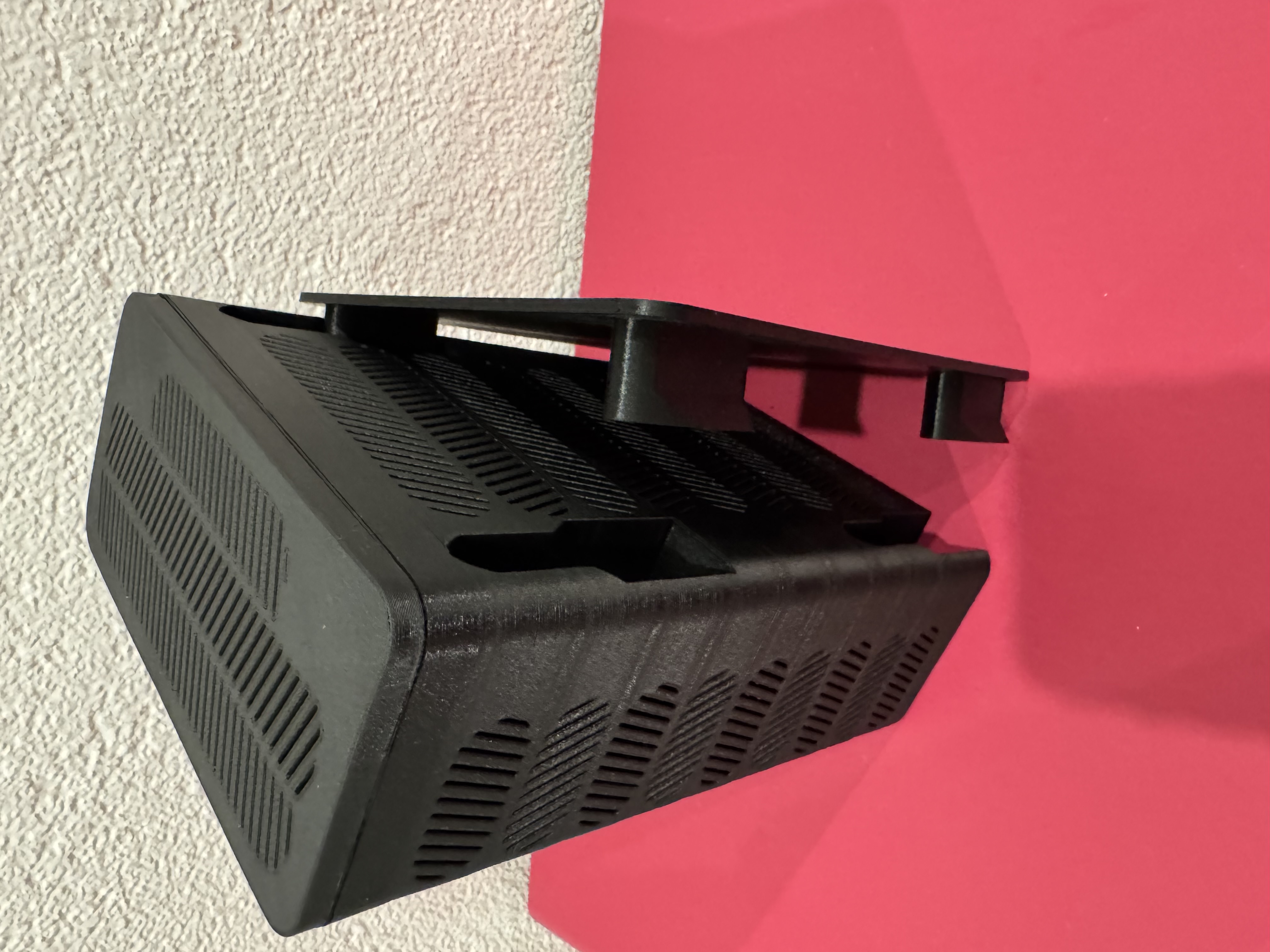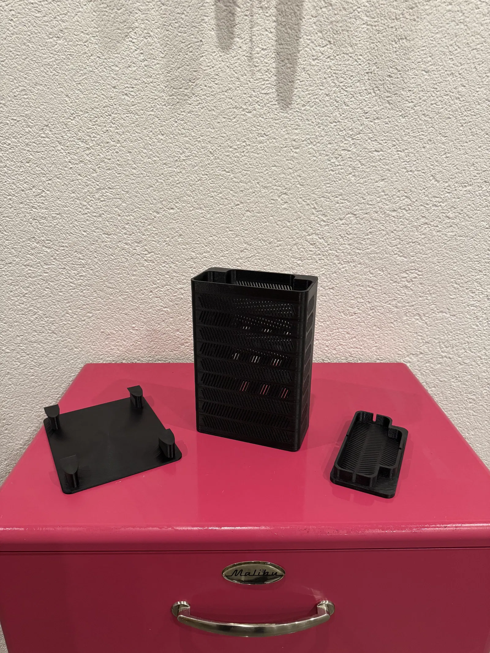 Trockenbox/Drybox nhỏ gọn cho silica gel với giá/đế gắn nam châm tích hợp để lắp đặt dễ dàng bên trong tủ hoặc các hộp/enclosure. Các khe thông gió 1 mm giúp airflow hiệu quả. Mẫu này in được hoàn toàn không cần supports, và có thể gắn nam châm trong lúc in.