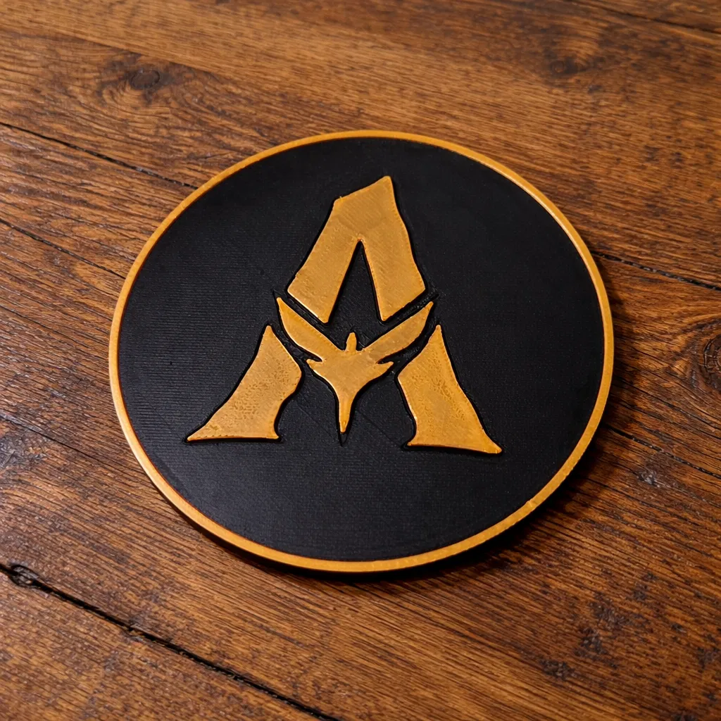 Miếng lót ly logo Avatar tối giản với chi tiết nổi, rất hợp để in multi-color hoặc đổi filament đơn giản. In đẹp với PLA/PETG, không cần support; dùng làm coaster, trang trí bàn làm việc hay quà tặng cho fan phim.