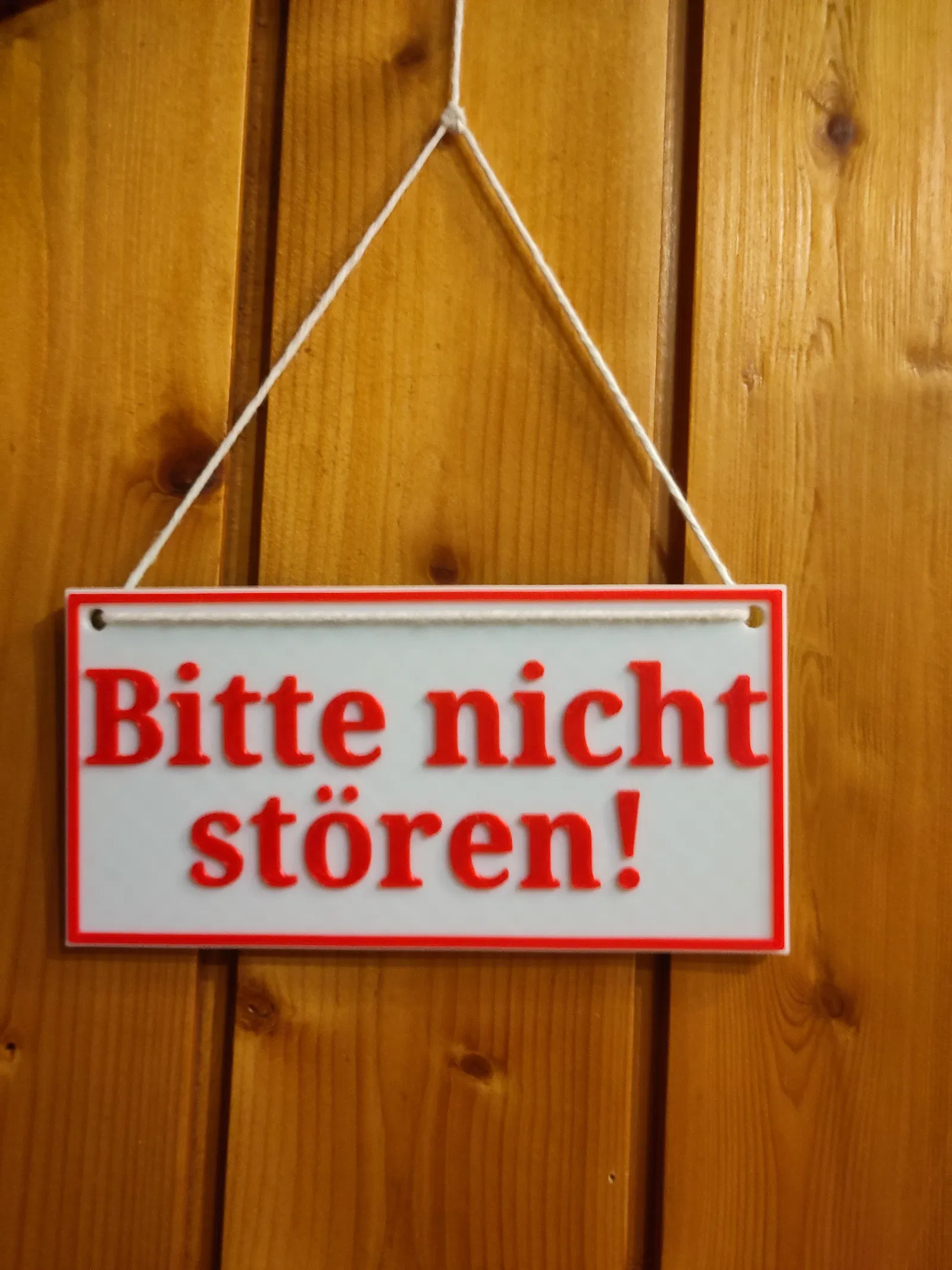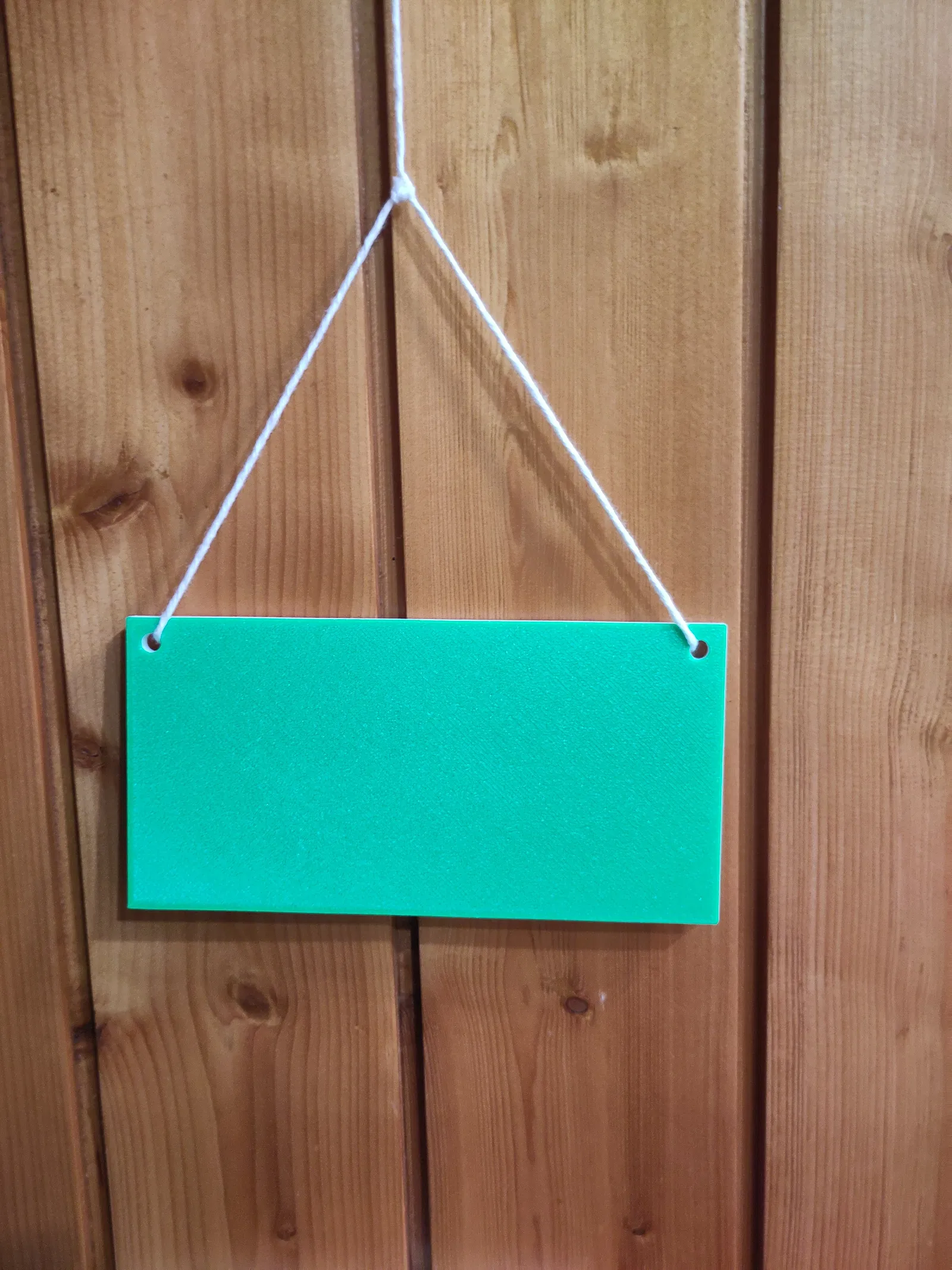 Mẫu bảng “Vui lòng không làm phiền” có mặt sau màu xanh, phù hợp treo ở cửa phòng, văn phòng hoặc khu vực cần yên tĩnh. In bằng PLA, có sẵn lỗ để xỏ dây treo tiện lợi.