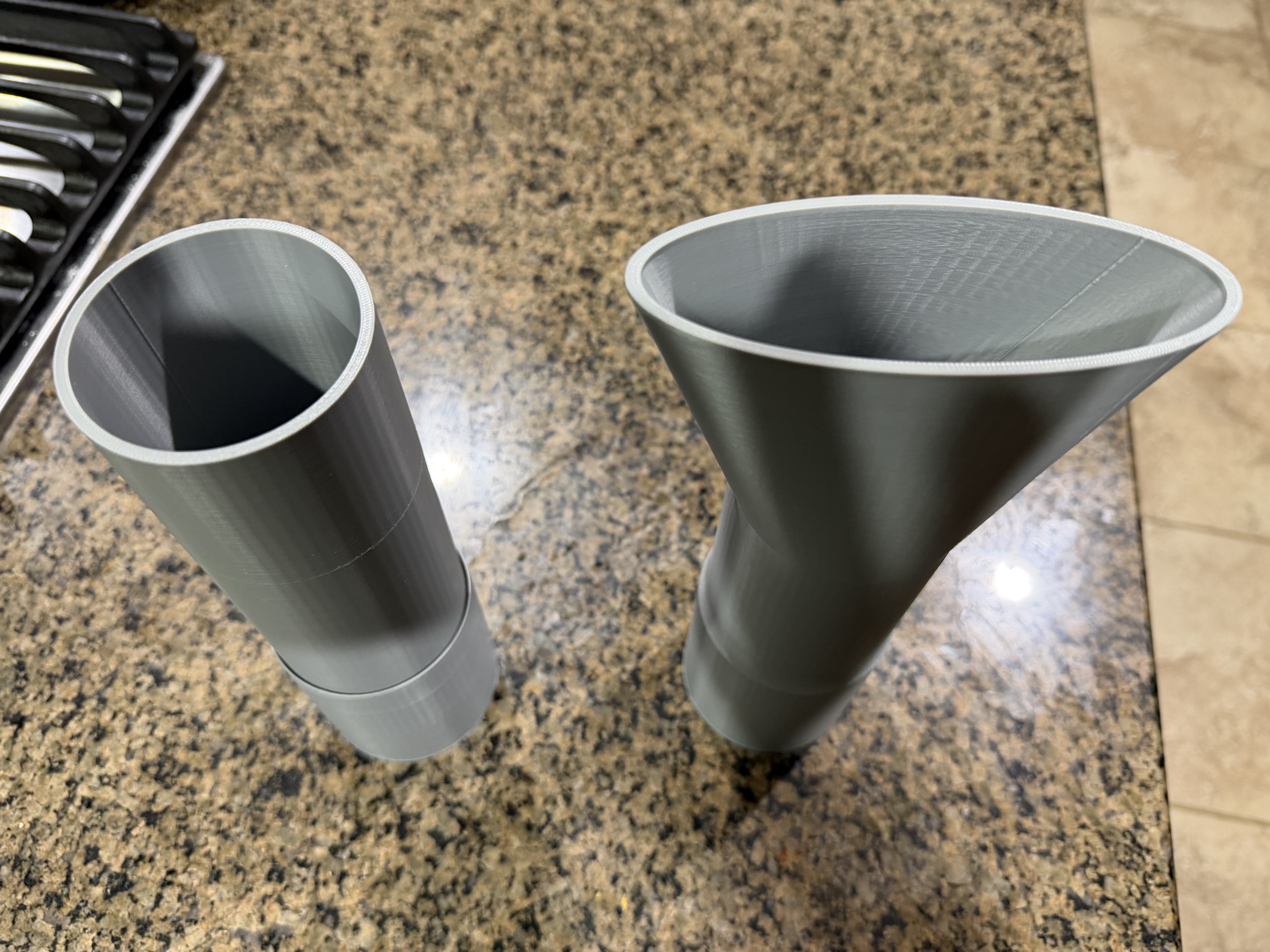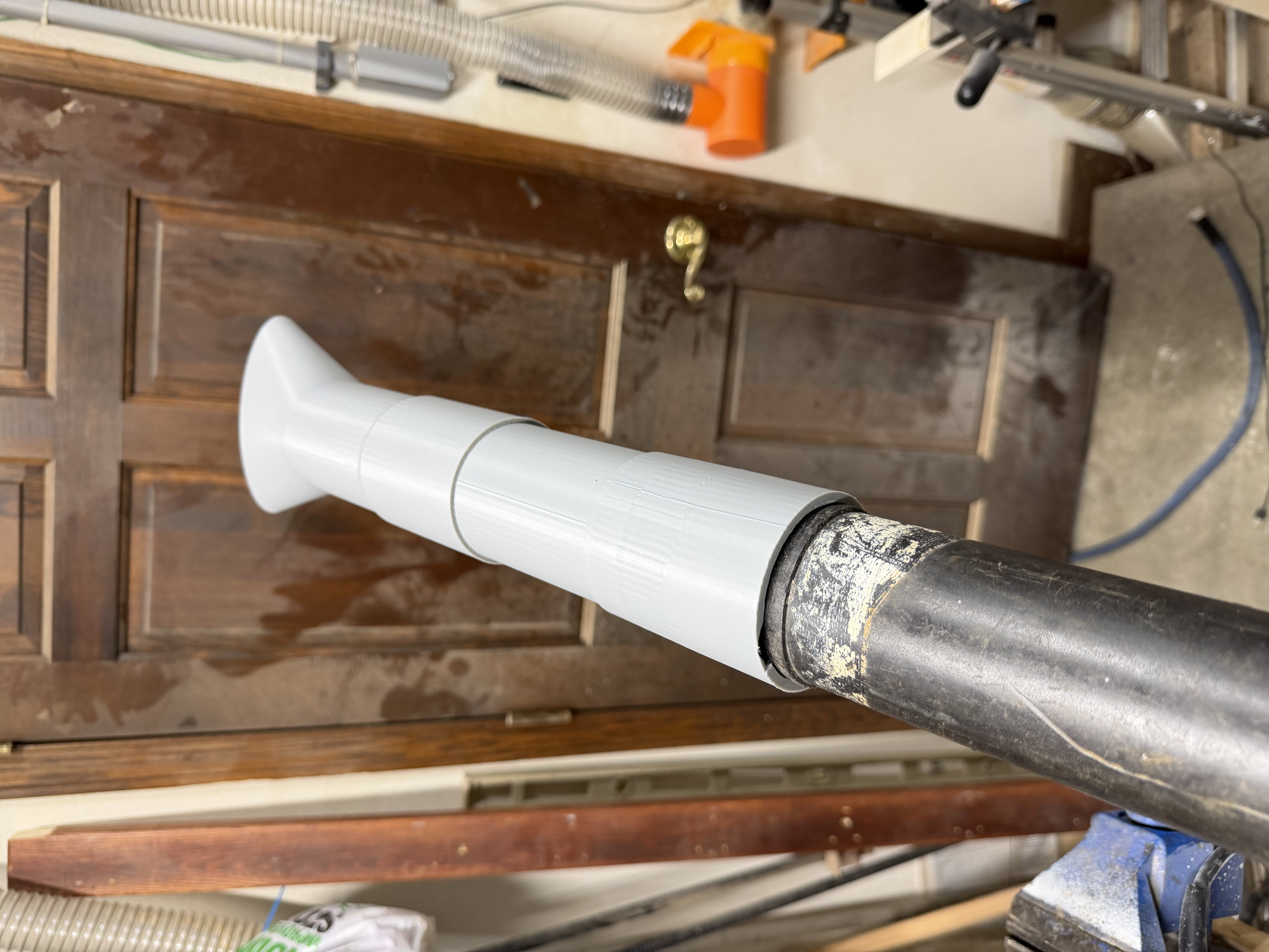 Đây là ống nối dài cho máy thổi Stihl BR400 của mình. Phần 1 có đầu nối kiểu bayonet gắn vừa vào máy thổi. Nó ôm khít theo phần côn (taper) của ống đối (mating tube). Mình dùng dụng cụ deburring làm sạch mép 2 lượt là vừa khít luôn.