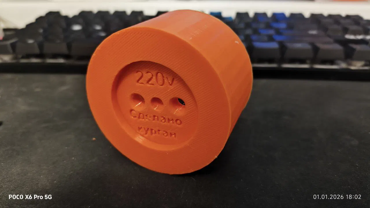 Mẫu ổ cắm tròn 220 kiểu Liên Xô (soviet). Phù hợp để in 3D làm mô hình, đạo cụ phục dựng hoặc trang trí theo phong cách retro. Có thể dùng để tham khảo thiết kế và lắp ráp.