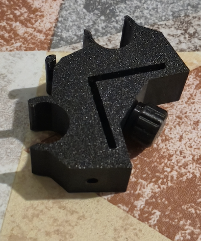 Khóa chân cho tripod, hữu ích để giữ tripod ở trạng thái gập lại thành một khối duy nhất, đồng thời giúp hạn chế làm trầy/xước hoặc hư hỏng chân và các đồ câu khác trong lúc vận chuyển. Lỗ trung tâm dùng cho vít M6 để cố định và chặn chi tiết, ngoài ra còn có các lỗ bên hông để gắn thêm tay đỡ/phụ kiện, giúp tripod vững hơn khi mở. In kèm support và để infill 100% để cho kết quả tốt hơn. Mẫu trong hình được in bằng PETG.