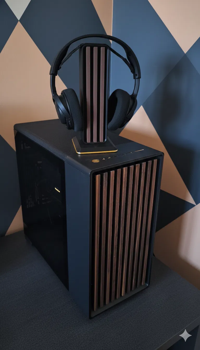 Mình tạo ra một cái headphone stand lấy cảm hứng từ thiết kế của thùng máy Fractal Design North.
