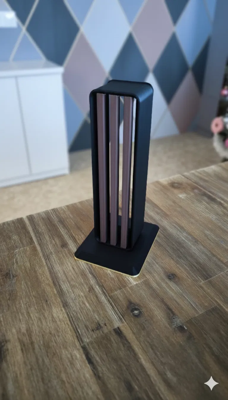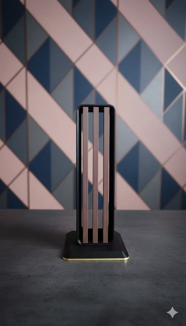 Mẫu headphone stand lấy cảm hứng từ thiết kế Fractal Design North. Đế có lỗ gắn nam châm 5x3mm để gắn trực tiếp lên mặt trên của case, giúp tai nghe đứng vững ngay cả khi bàn bị rung.