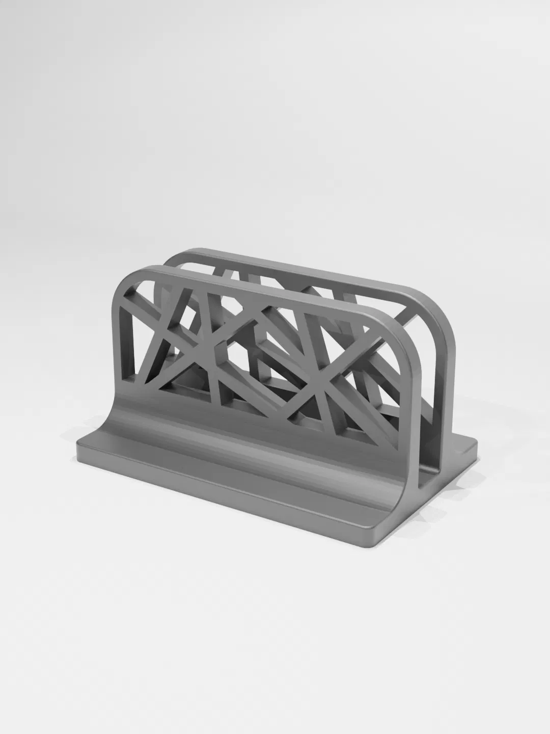 Kệ dựng laptop/máy tính bảng theo chiều dọc với thiết kế truss hiện đại, nhẹ mà chắc. Có 5 size bề rộng (12–30mm) phù hợp từ iPad tới laptop gaming. In dễ, không cần supports; khuyến nghị PLA/PETG.