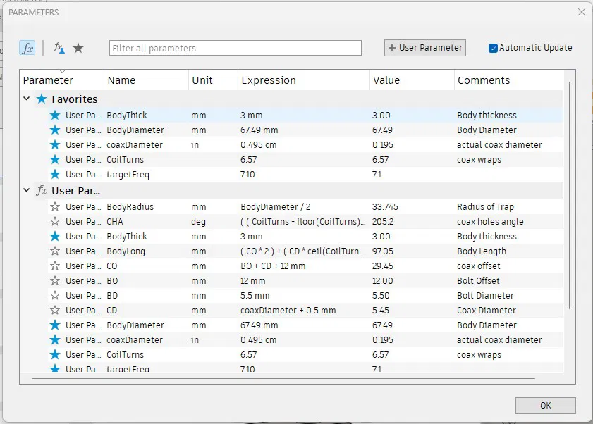 Nguồn mô hình Fusion 360 để xây dựng các cơ thể cuộn bẫy dỗ tùy chỉnh dựa trên các tham số được chỉ định của người dùng