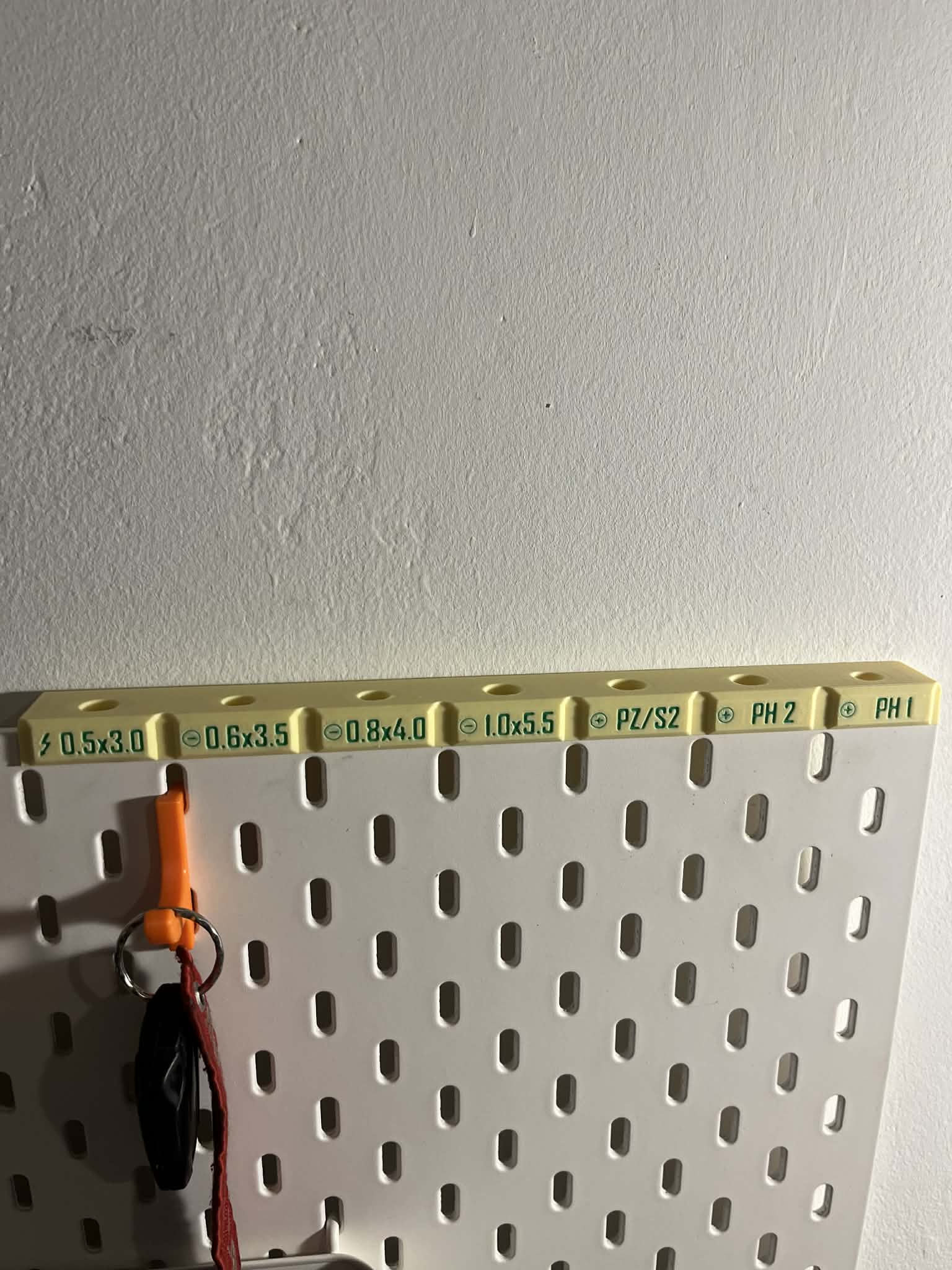 Kệ này vừa với bộ Wera 05006480001 và hỗ trợ lắp ở phía trên một bảng Skadis, lắp ở bất kỳ vị trí nào trên bảng (thông qua phần cứng M4), hoặc lắp lên tường. Bản lắp tường dài hơn 5 mm để lấy dụng cụ dễ hơn. Khoảng cách giữa các tua vít khớp với hàng lỗ trên bảng.
