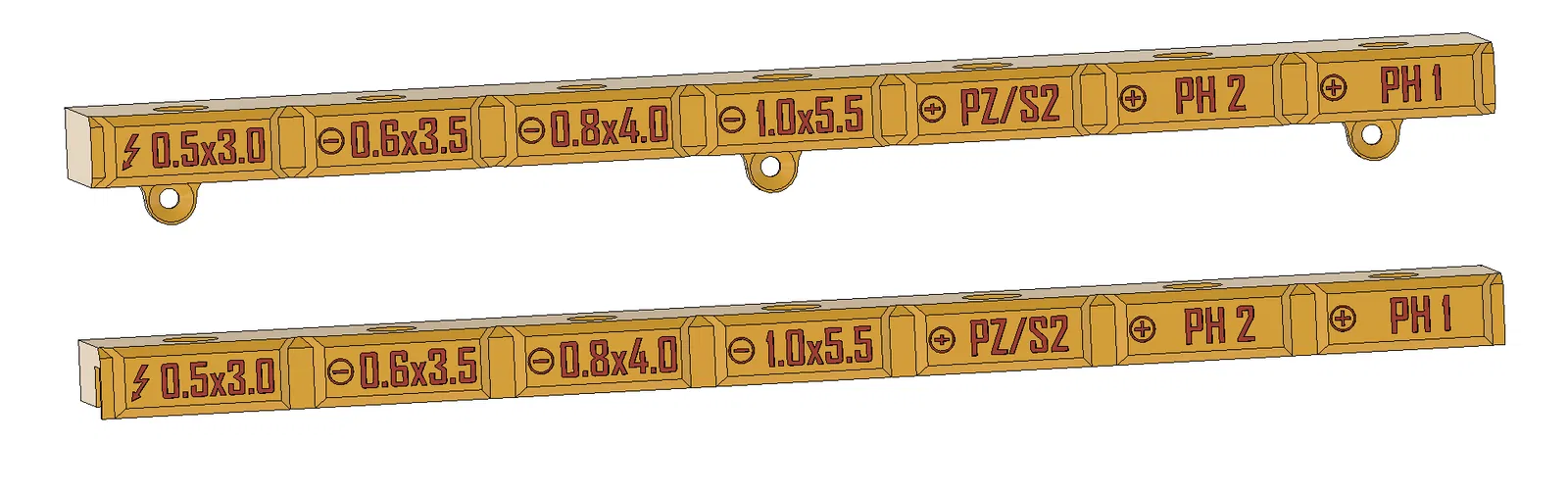 Note: Các rãnh cắm tua vít được thiết kế để lỏng vừa; tuy nhiên có thể sẽ chặt tùy theo độ chính xác khi in hoặc sai số gia công của từng cây tua vít.