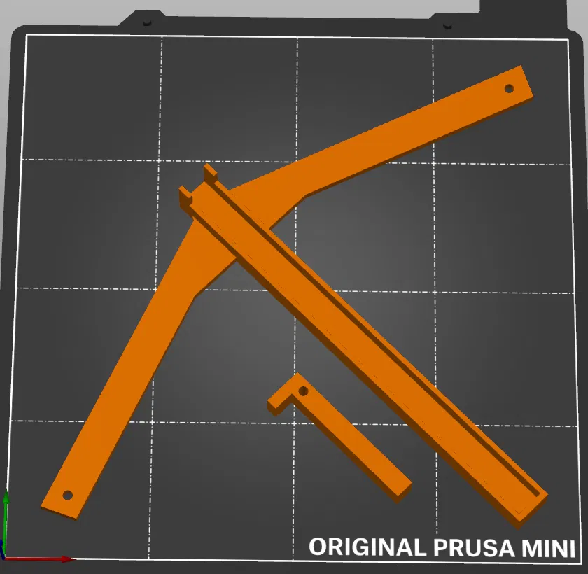 Có kèm một hình từ PrusaSlicer để cho thấy cách đặt lên mặt bàn in. Sau khi import file STL, xoay cây nỏ 45 độ là sẽ vừa.