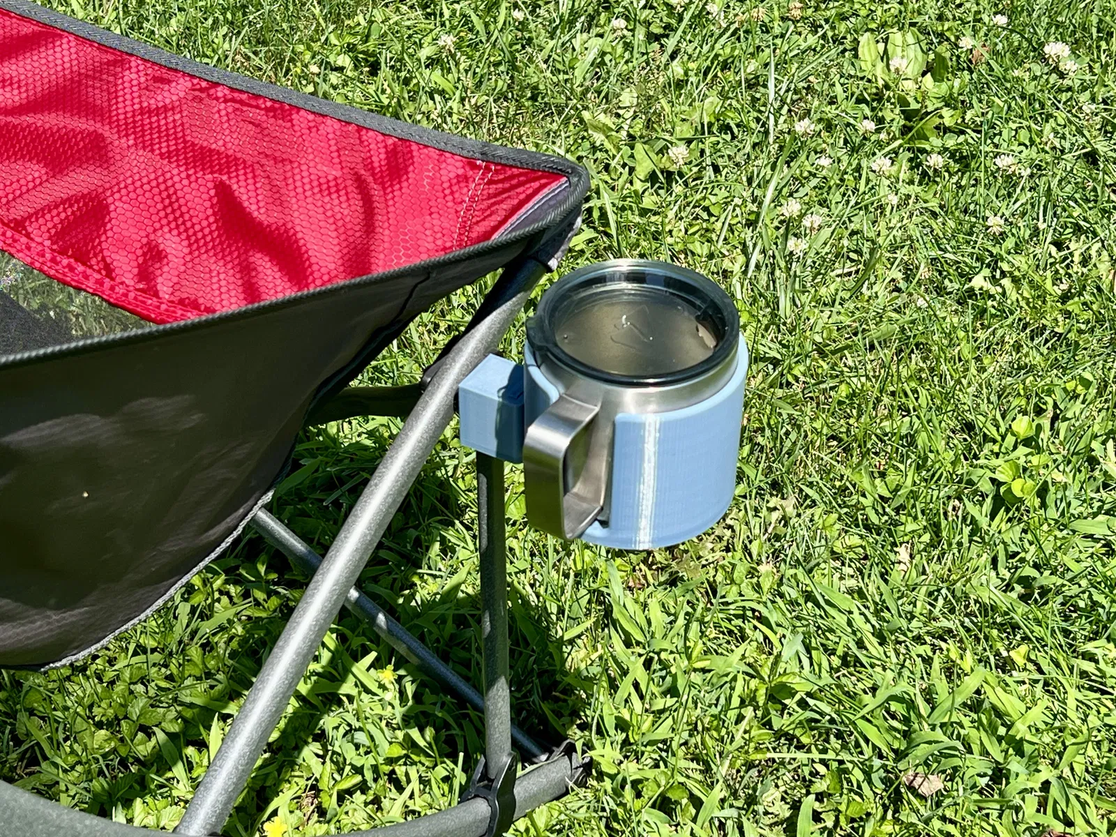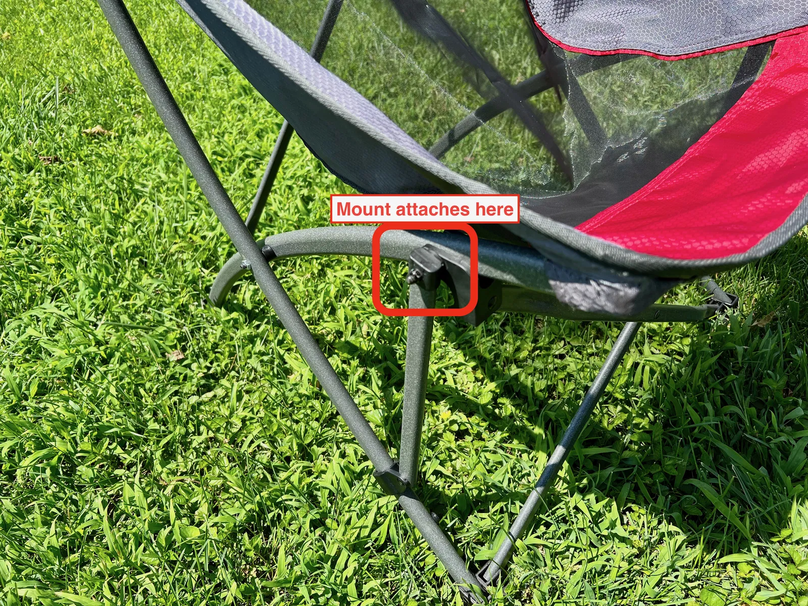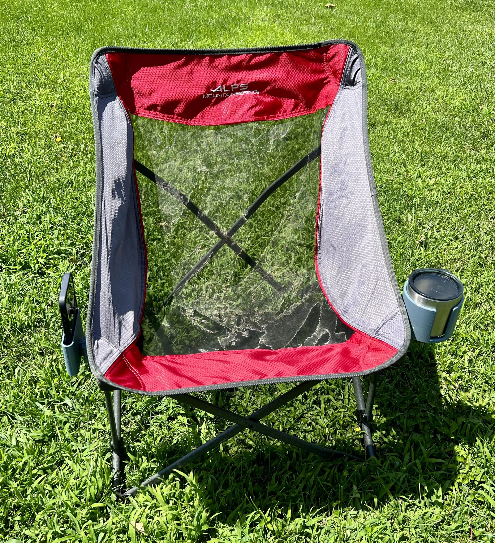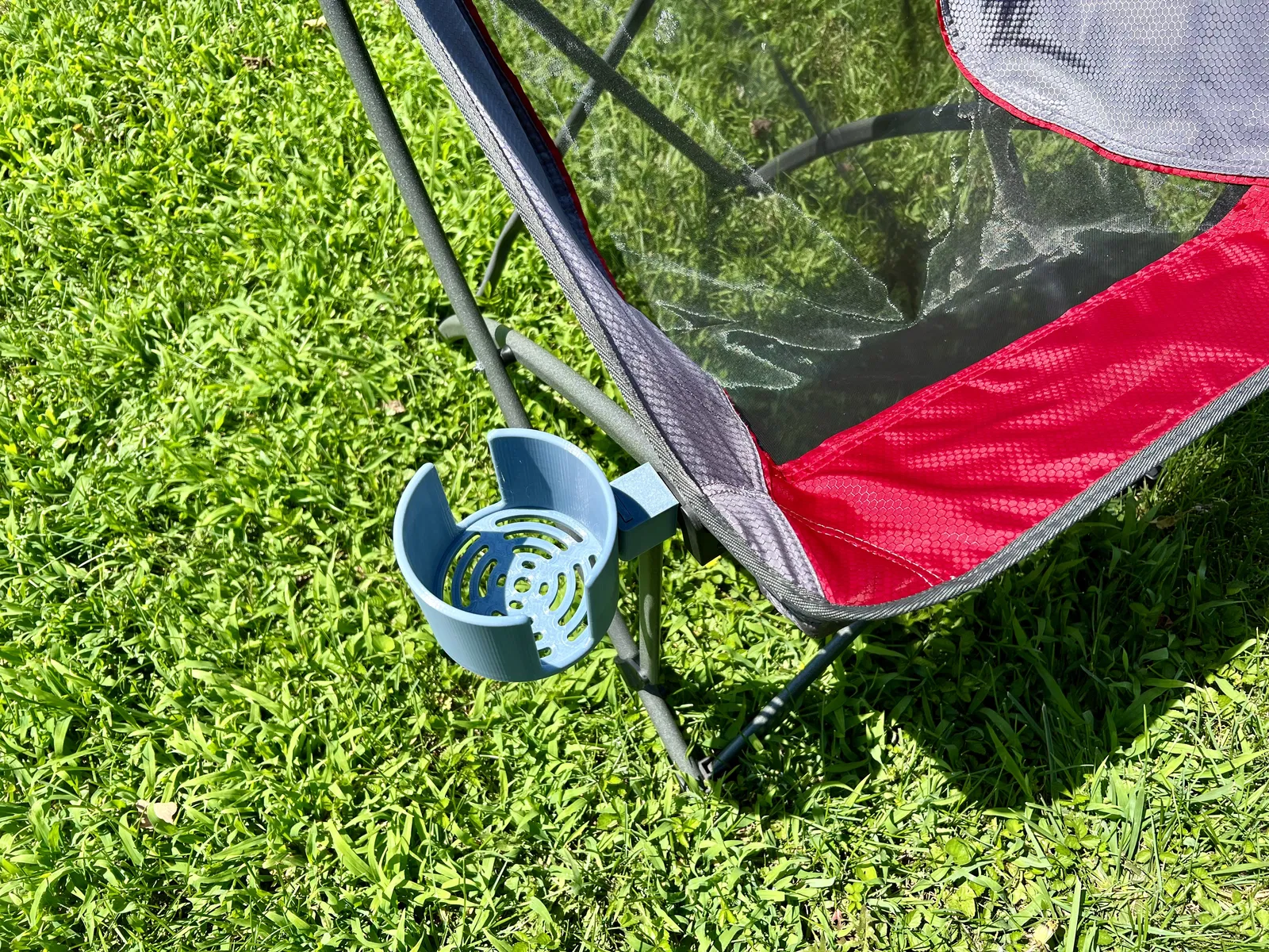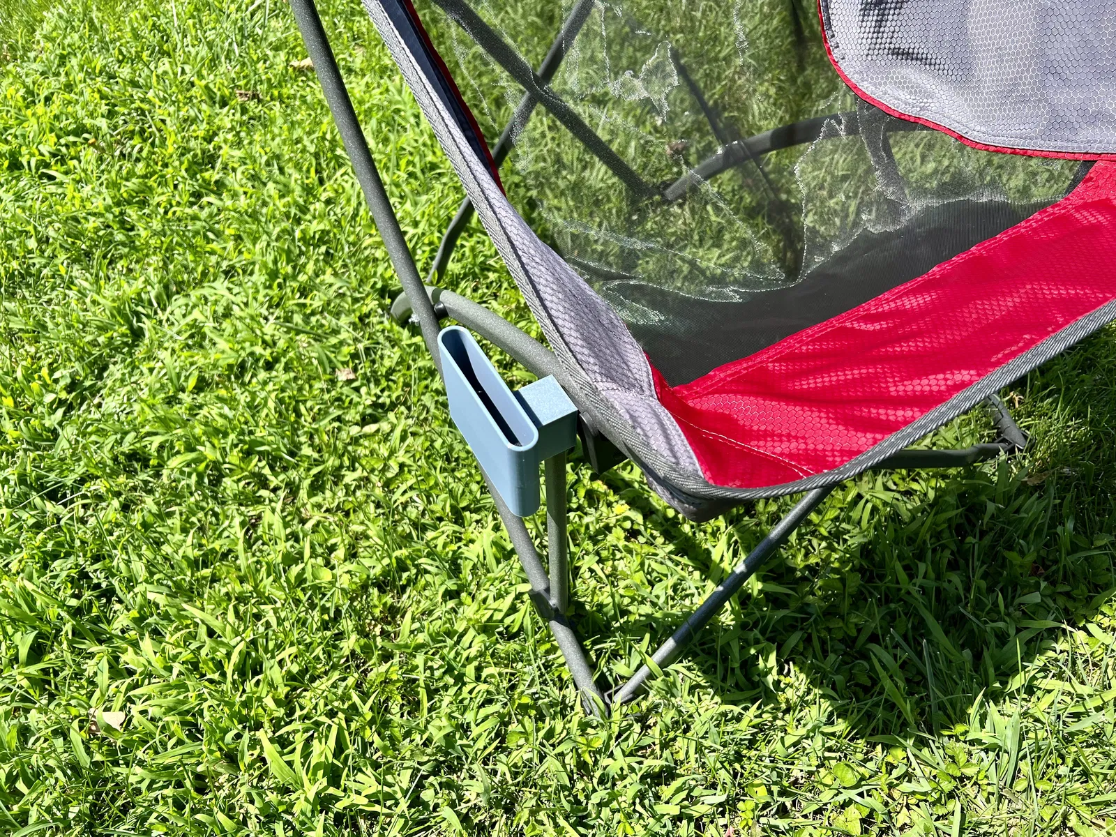 Giá treo phụ kiện mô -đun cho ghế Camber leo núi Alps. Đây là một chiếc ghế trại thoải mái nhưng nó đã thiếu một người giữ cốc rất cần thiết.