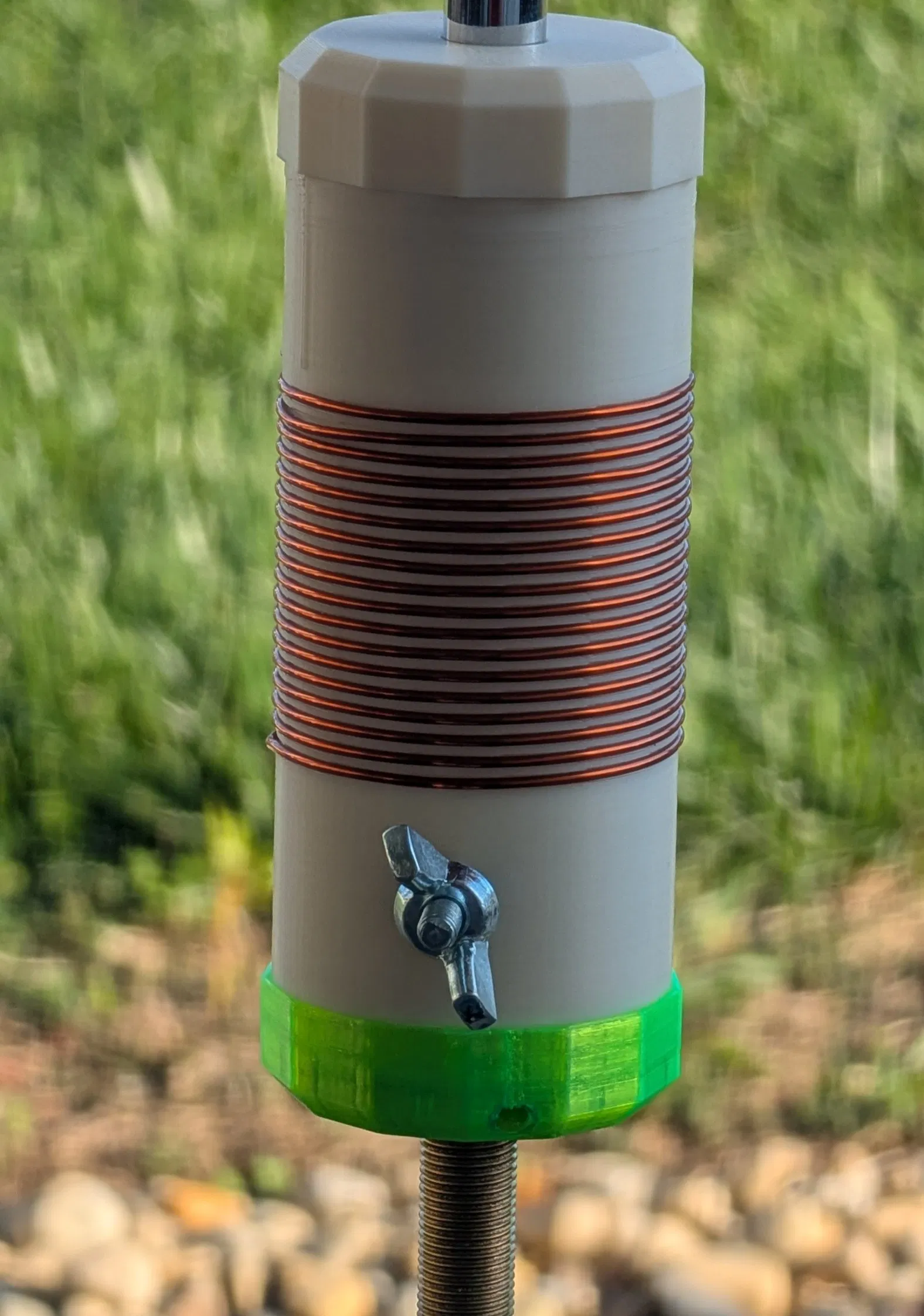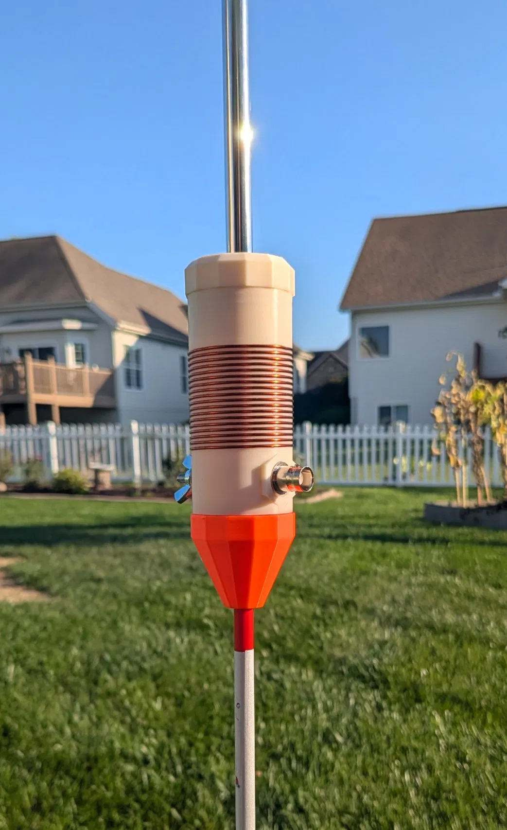 Mẫu antenna vertical 20m gọn nhẹ theo truyền thống St. Louis QRP Society, dùng whip 10 đoạn 118cm và counterpoise 4m. Kèm file STL cho nắp chụp gắn cọc sợi thủy tinh hoặc ty ren 1/8 NPT.