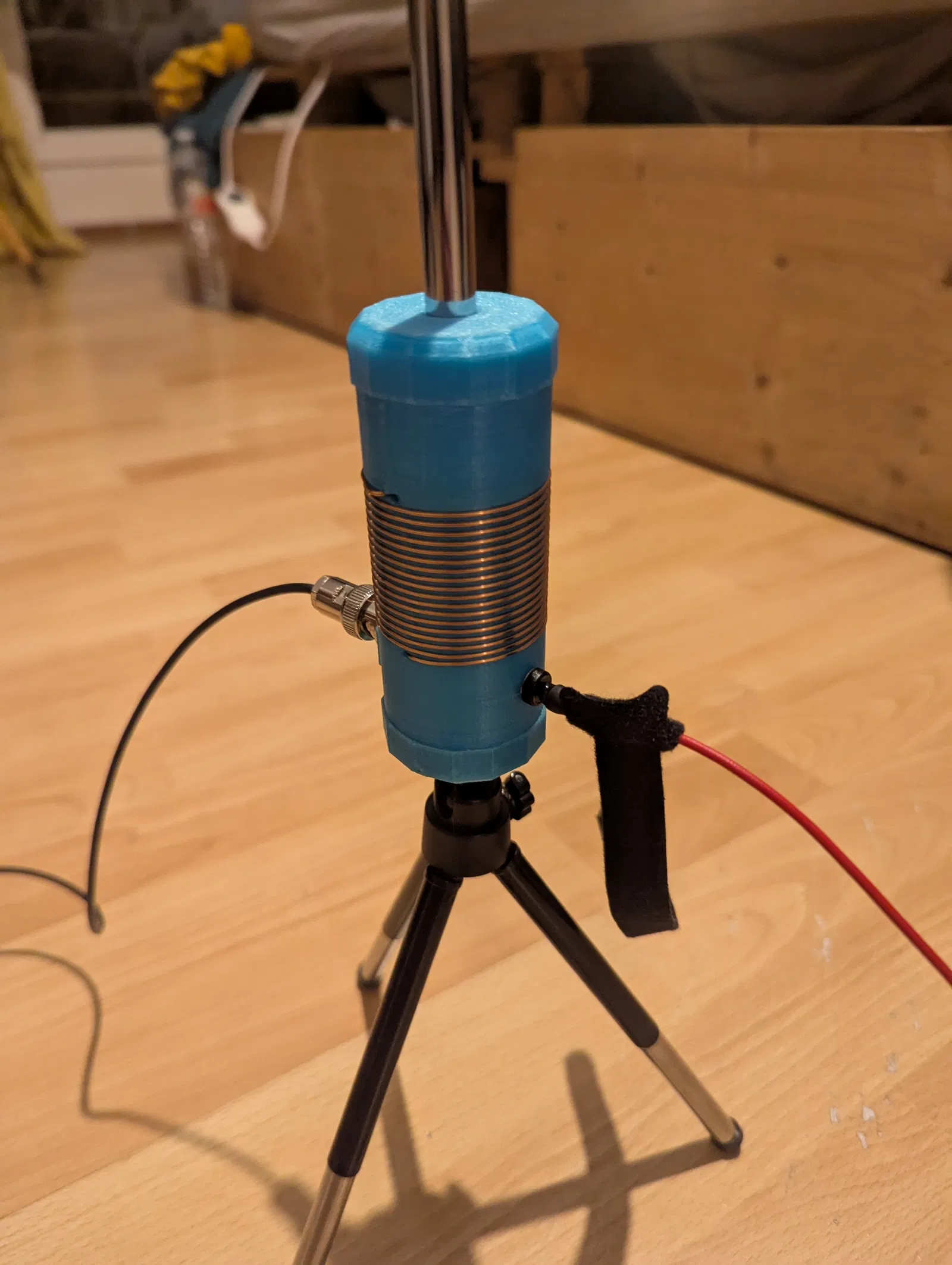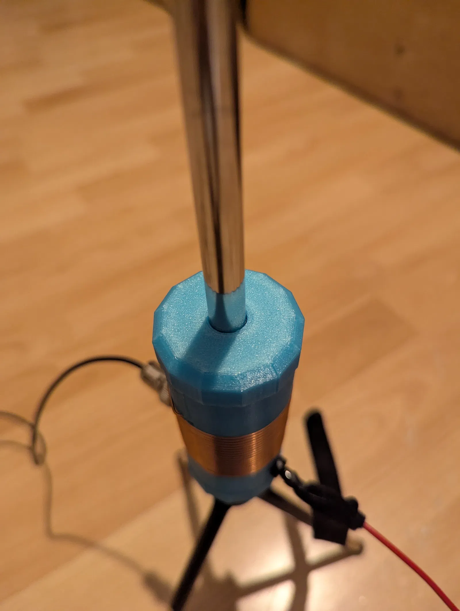 Mình chỉnh lại thiết kế St. Louis POTA 20 cho hợp nhu cầu và vật liệu sẵn có. Thêm lỗ 6 mm cho banana plug để nối radial nhanh, gọn; kèm heat insert 1/4-20x7 và lỗ whip 10 mm.