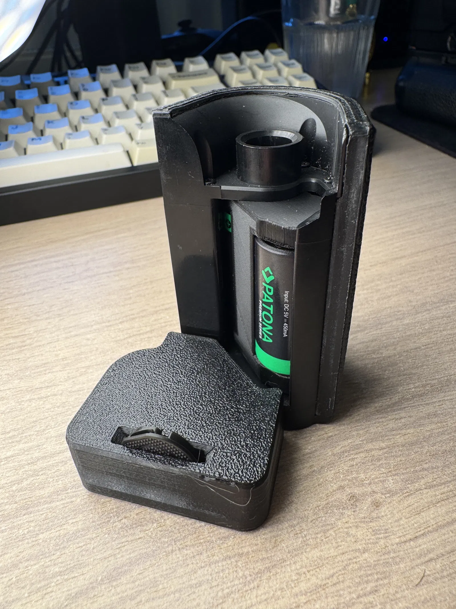 Trong lúc đọc manual của PB-E2, mình mới để ý là nó đáng lẽ phải có cái contact cover, mà bộ của mình thì lại không có. Vì 8 viên pin AA cộng lại ra khoảng 12V 5A dòng điện, nên mình làm cái nắp này để tránh bị chập khi để chung với đồ trong balo/túi.