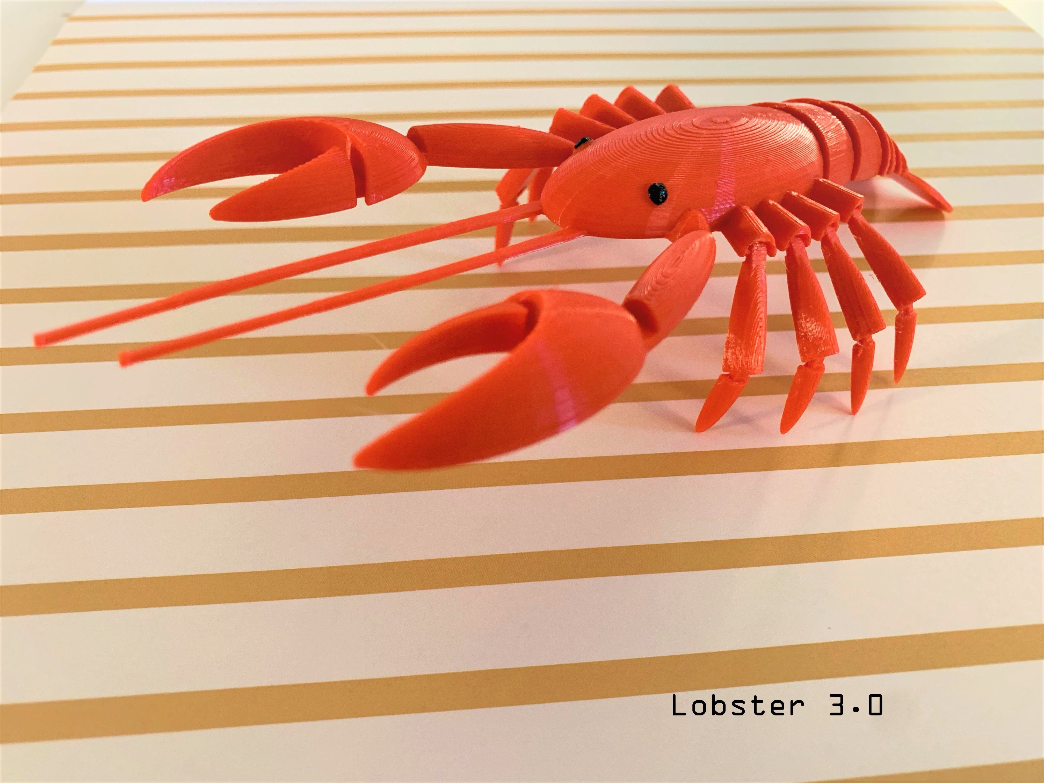 Một chú tôm hùm khớp nối nhỏ xinh để làm bạn trên bàn làm việc. Thiết kế print-in-place, không cần support. Có 2 bản V5-A (khớp linh hoạt, như đồ chơi) và V5-B (giữ dáng tốt, tự đứng).
