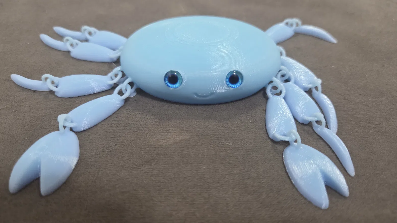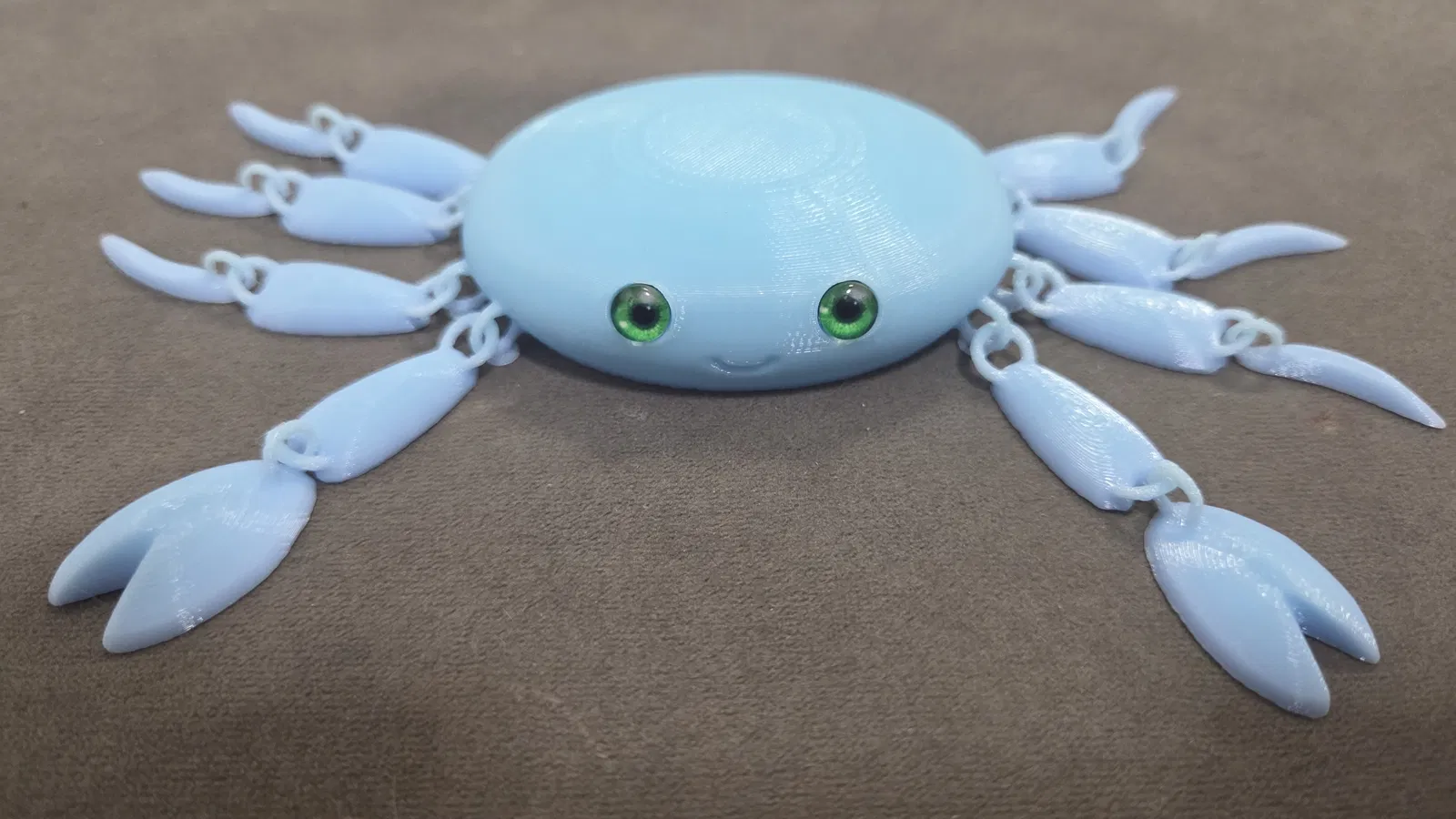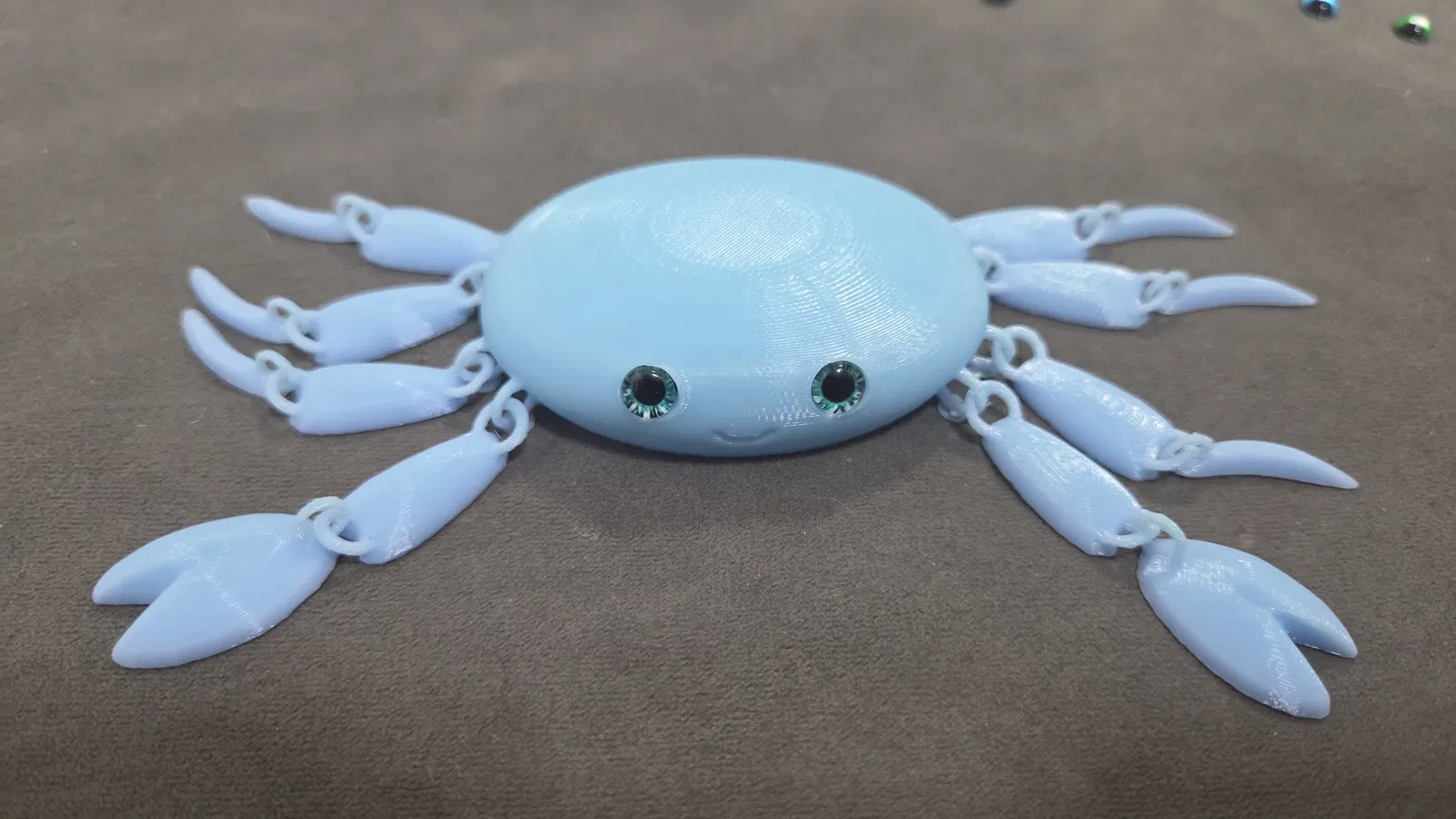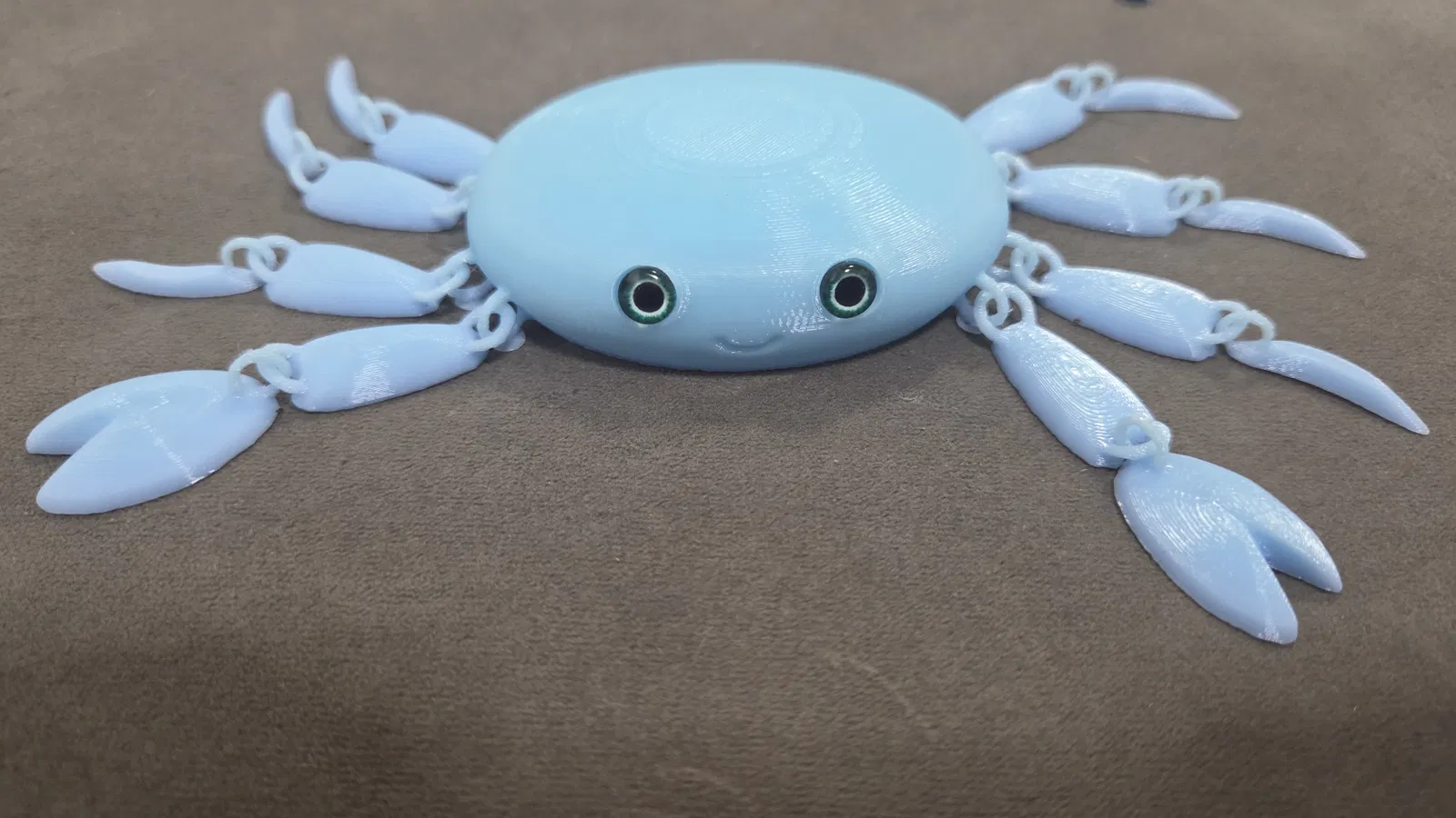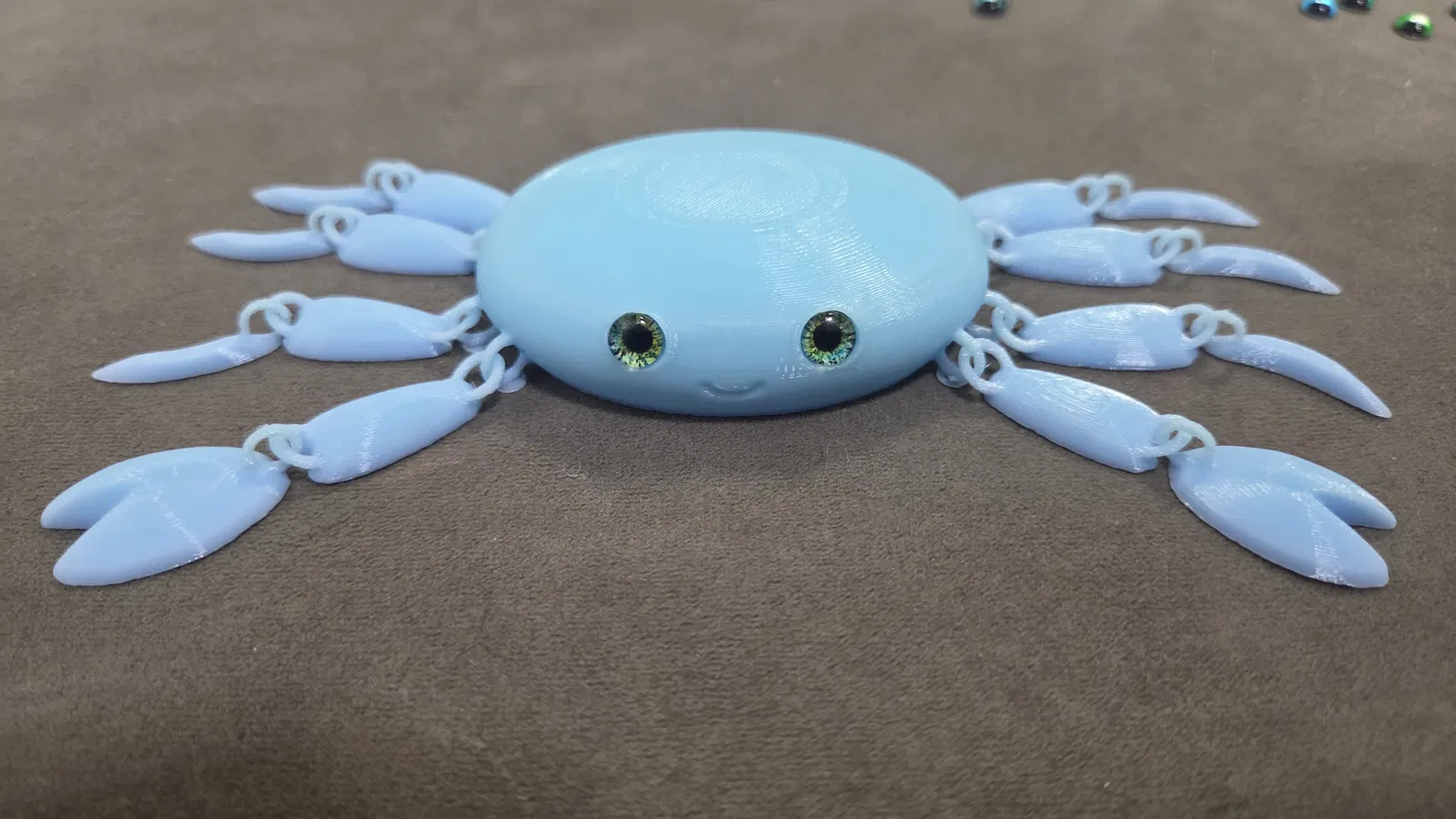 Mẫu cua khớp siêu dễ thương nay tương thích glass eyes 6mm. Có file 3mf kèm negative modifiers; sau khi slice sẽ tự hiện lỗ gắn mắt. Kèm link mua mắt kính và filament Gradient ice cream.