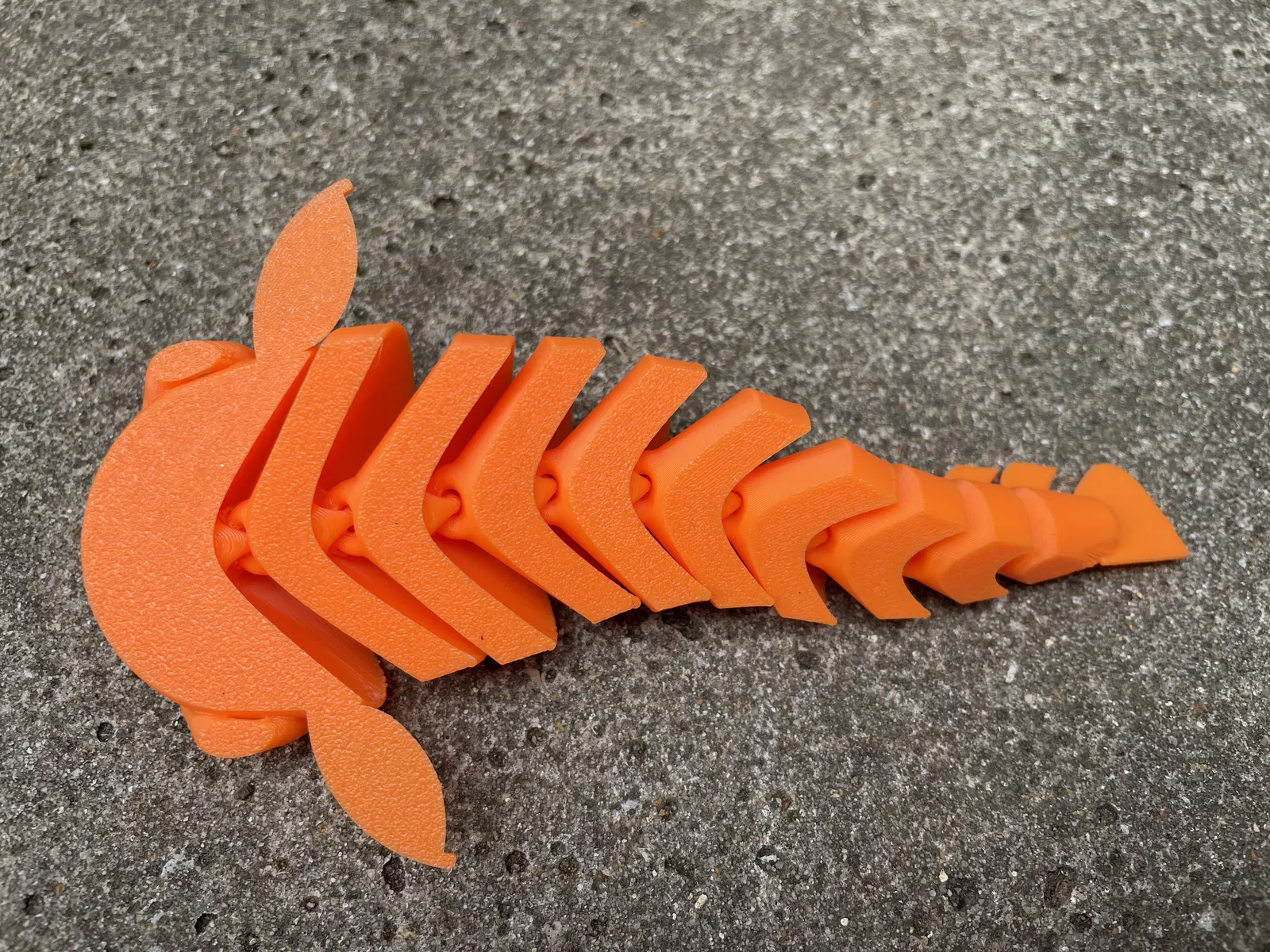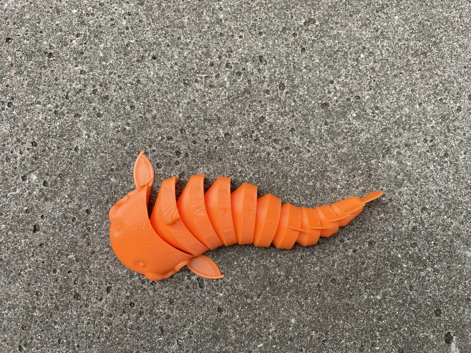 Một mẫu cá trê (catfish) khớp nối (articulated) được thiết kế để in trên máy in FDM mà không cần supports. Đừng thêm supports, vì sẽ làm hư/khít các khớp.